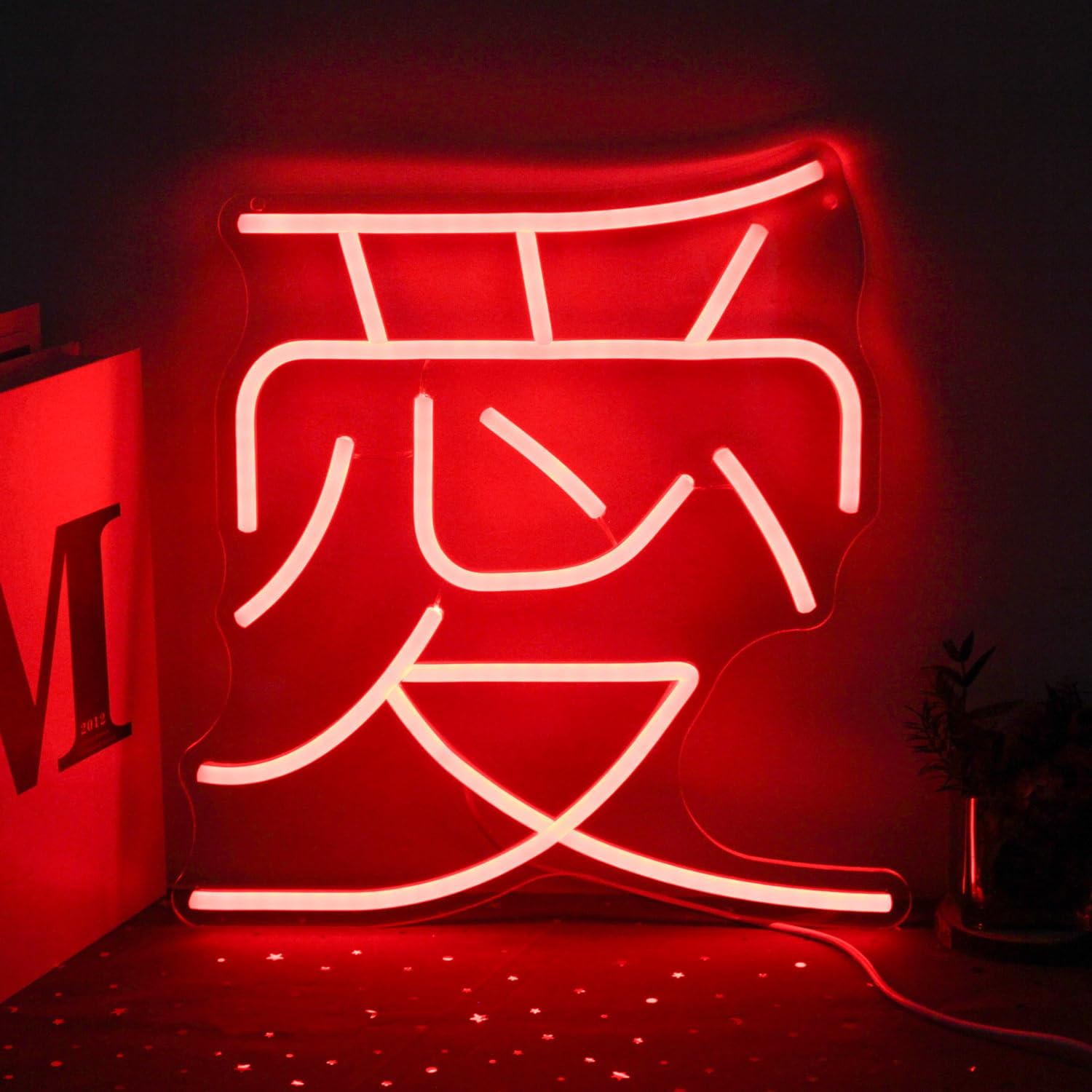 - 【Love Neon Sign】 This love kanji in Japanese letter LED sign has a unique shape and bright red color. If you are a cultural enthusiast, lighting up the neon led sign will create a wonderful and romantic atmosphere for your room.
