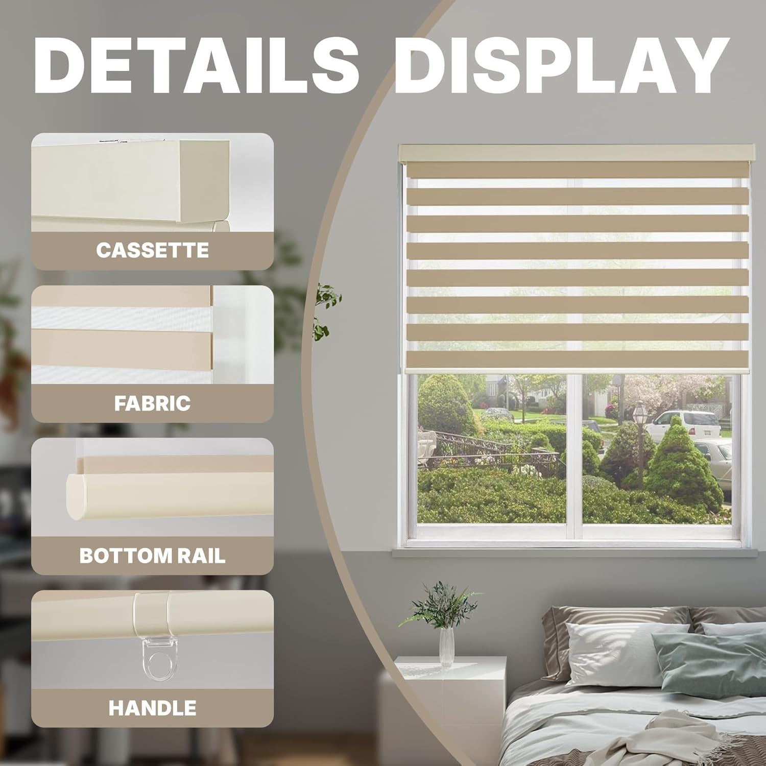 HESTIA Cordless Zebra Blinds Light Filtering Roller Shades UV Blocking Blackout Privacy Indoor Window Shades for Home Office Day and Night, Beige,35" W x 60" H