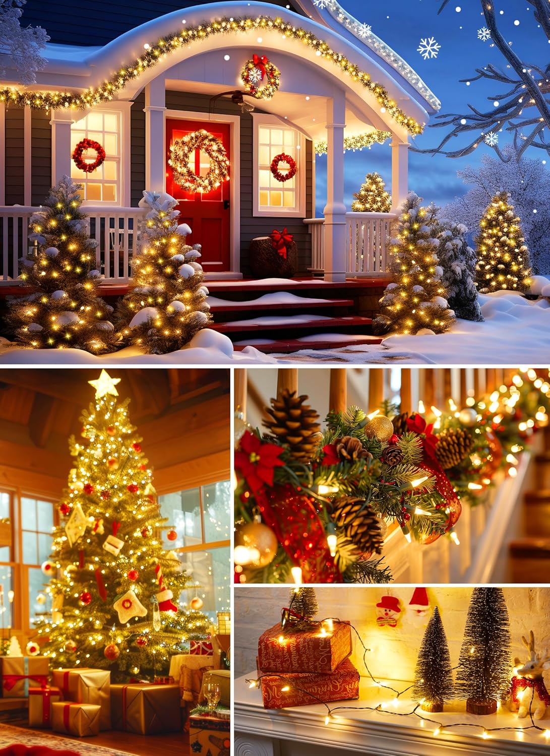 - Soft Warm White Light: The indoor use mini Christmas lights set comes with eye protection soft warm white light and green cable, which is a perfect choice for the tree, bedroom, balcony, garden, Xmas, indoor, outdoor, birthday, wedding, party, Christmas and other festival decoration. These 360º clear twinking string lights can not only provide good lighting effects but also bring a more romantic festival atmosphere.