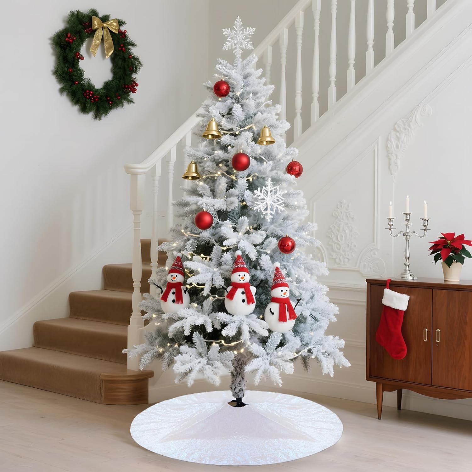 Eternal Beauty Christmas Tree Skirt, 36 Inch White Iridescent Sequin Tree Skirt Small Xmas Tree Skirt for Christmas Tree Decorations
