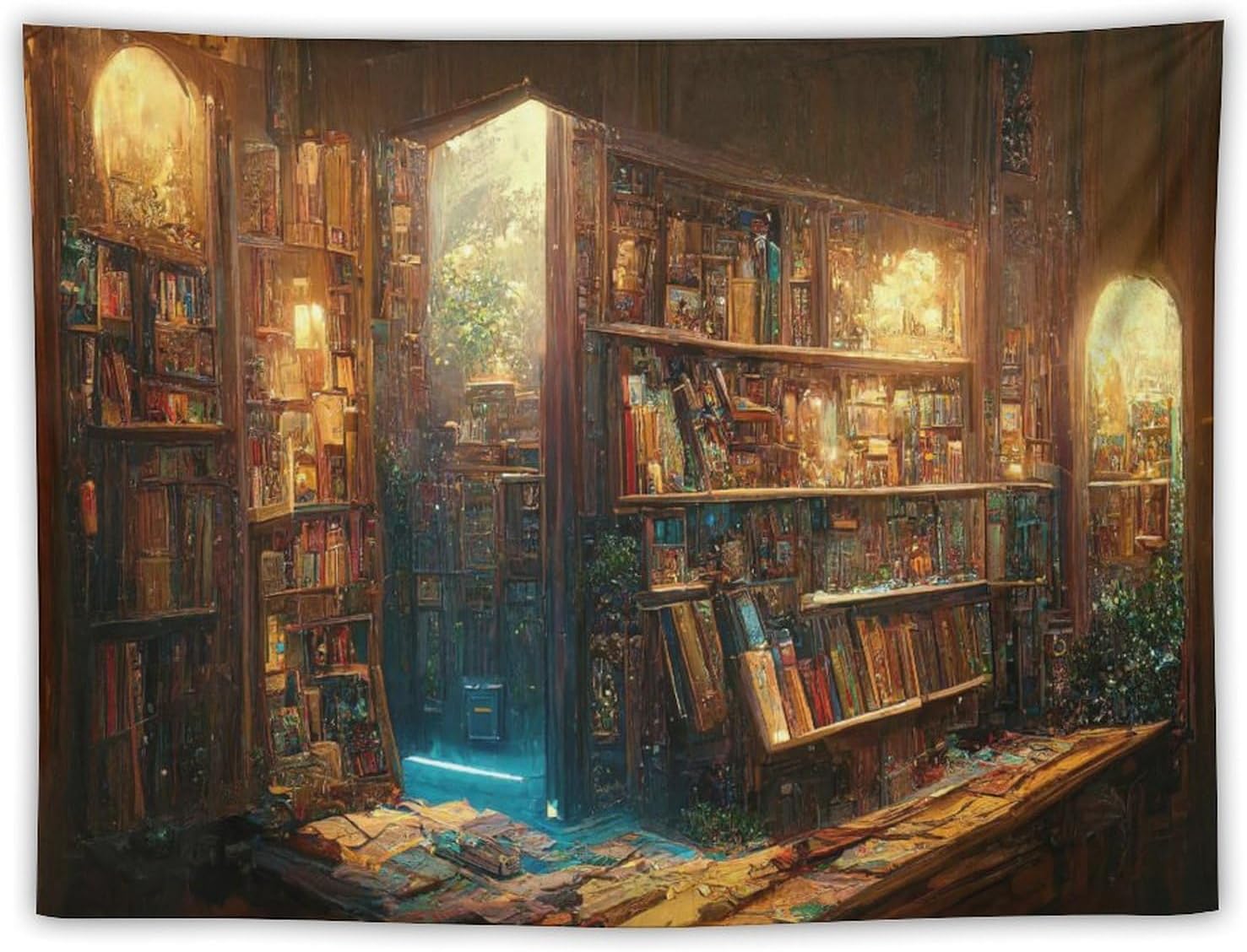 Kurtect Bookshelf Tapestry,Vintage Style Library Watercolor Art Theme Pattern Print Tapestries for Party Beach Picnic Blankets Tablecloths Living Room Wall Deocr, 30x40 in