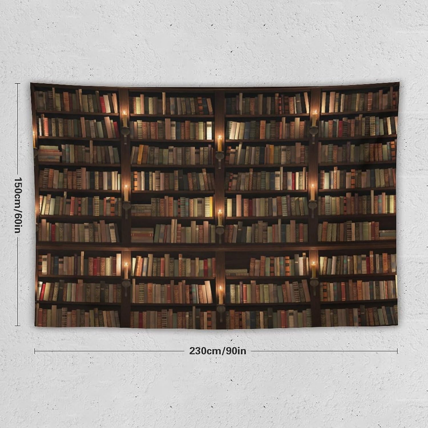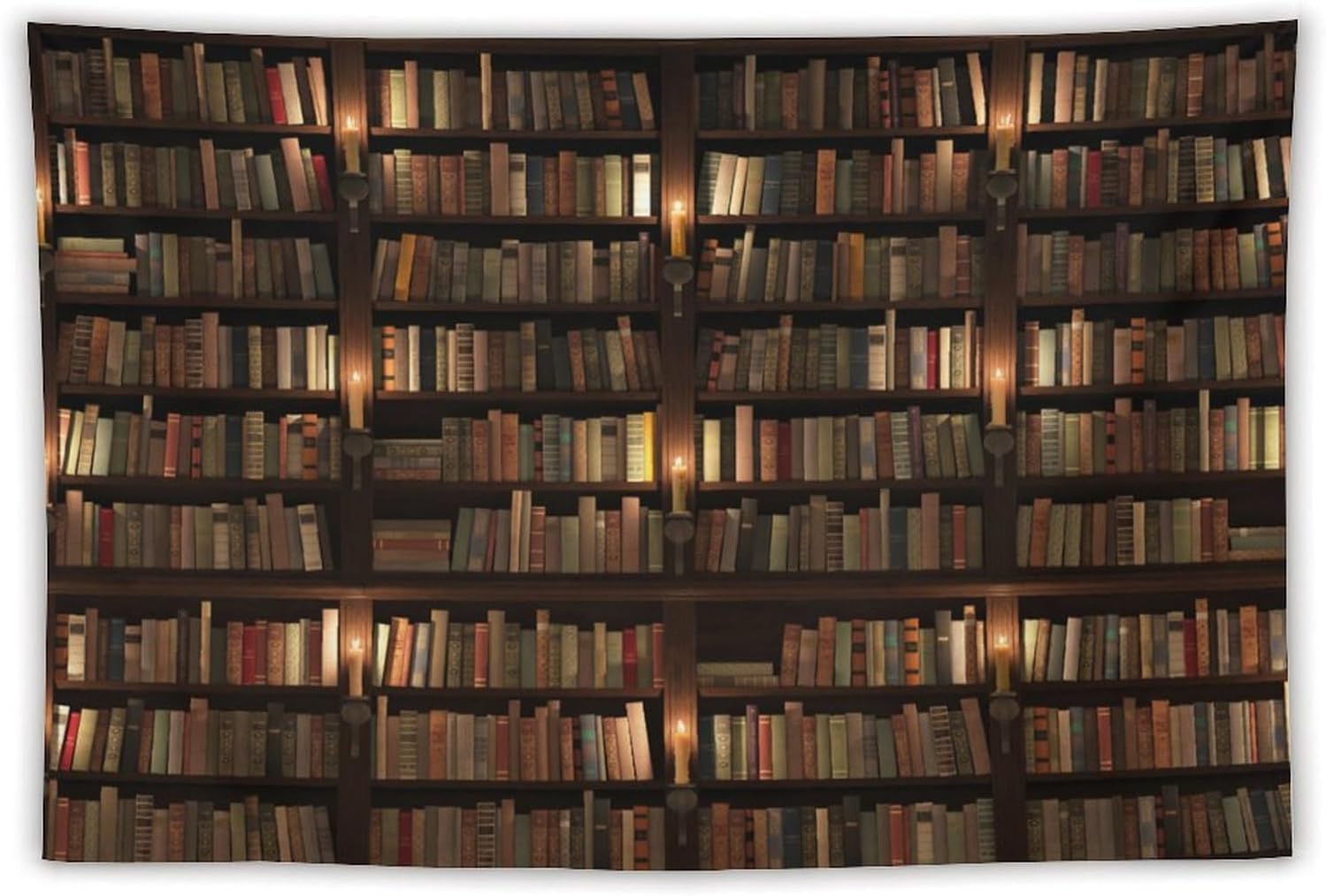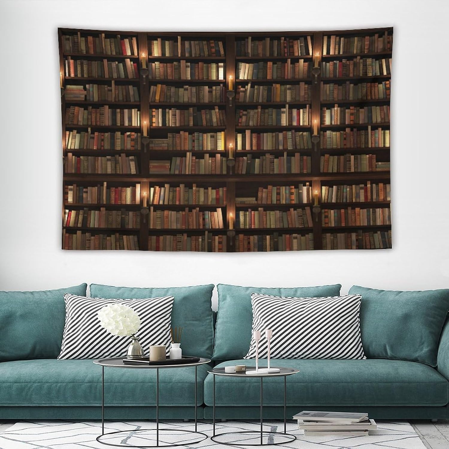 Kurtect Bookshelf Tapestry,Retro Library Bookcase Antique Mid Century Pattern Print Tapestries for Party Beach Picnic Blankets Tablecloths Living Room Wall Deocr, 60x90 in