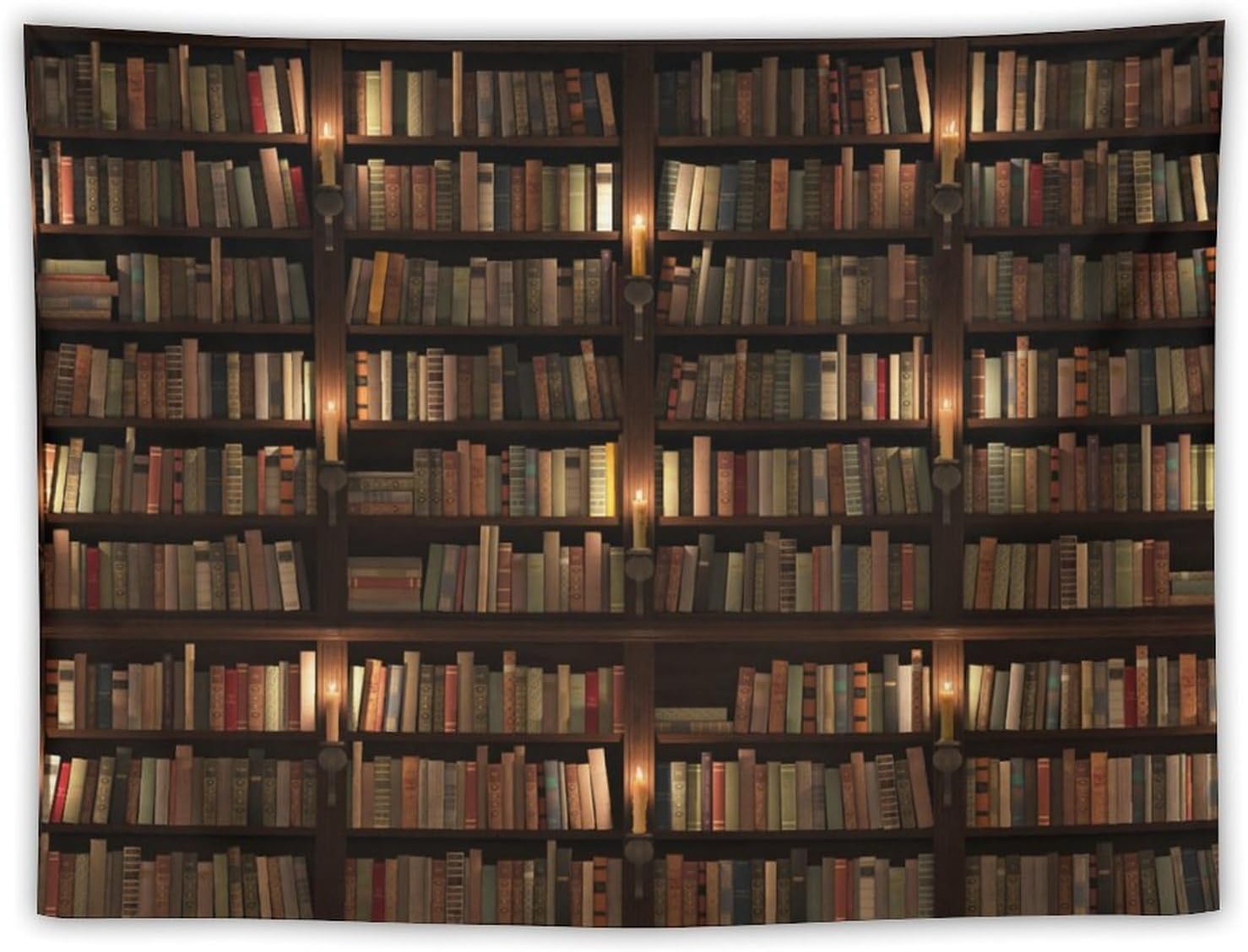 Kurtect Bookshelf Tapestry,Retro Library Bookcase Antique Mid Century Pattern Print Tapestries for Party Beach Picnic Blankets Tablecloths Living Room Wall Deocr, 30x40 in