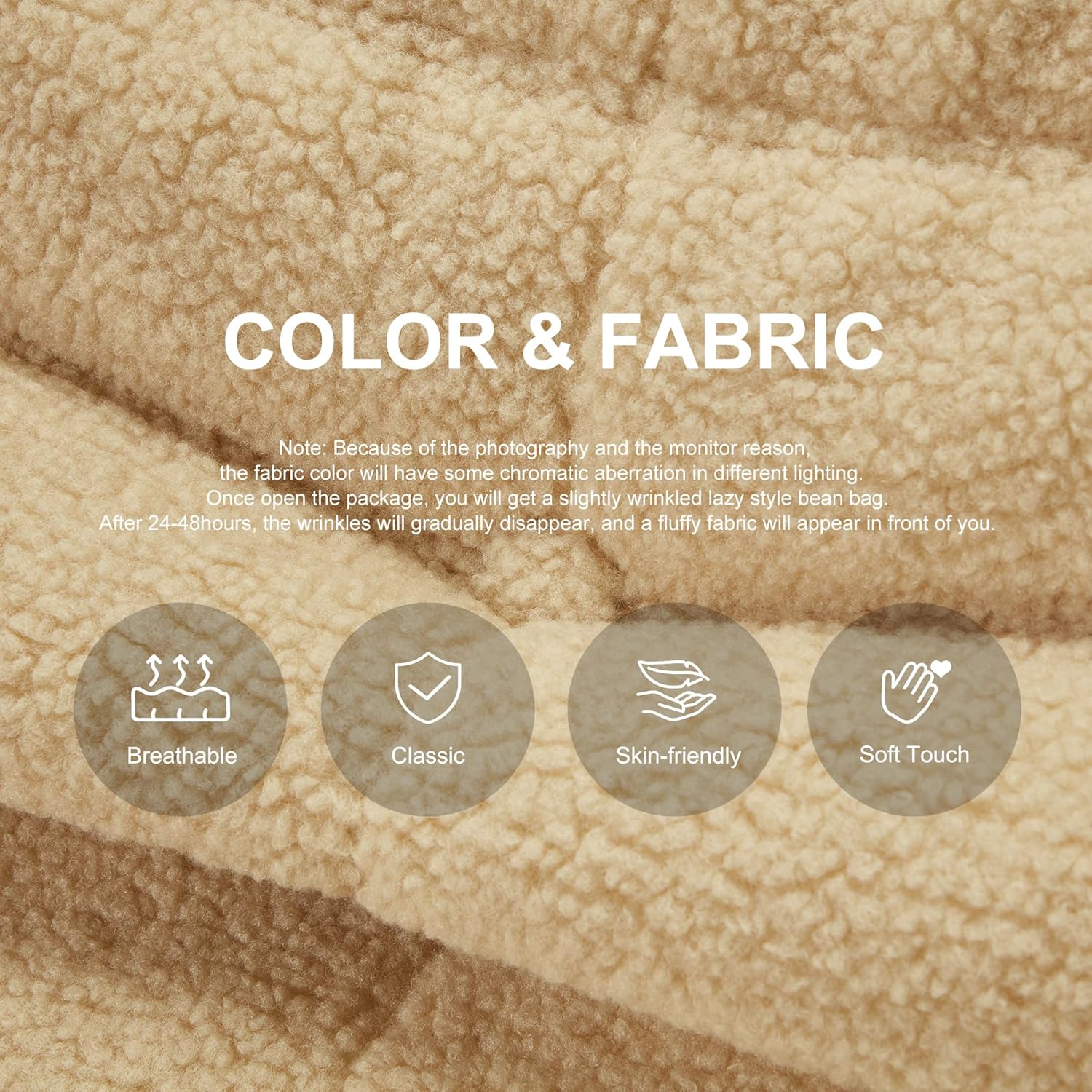 Bean Bag Chairs for Adults Giant Bean Bag Chair Memory Foam BeanBag Chair Big Bean Bag Sofa with Filler Faux Fur Fireside Beanbags Lazy Sofa for Living Room Bedroom Dorm Office (Khaki Teddy)