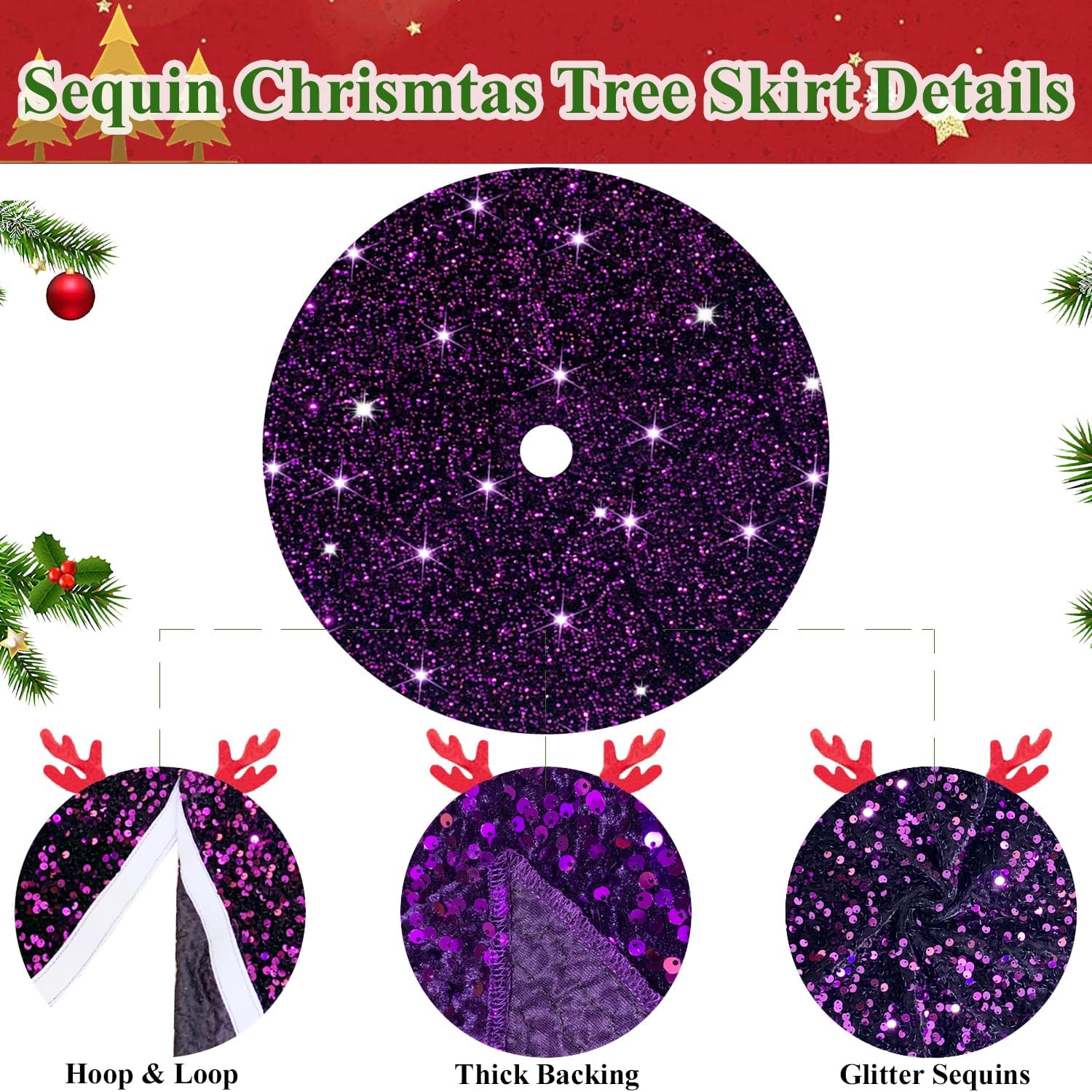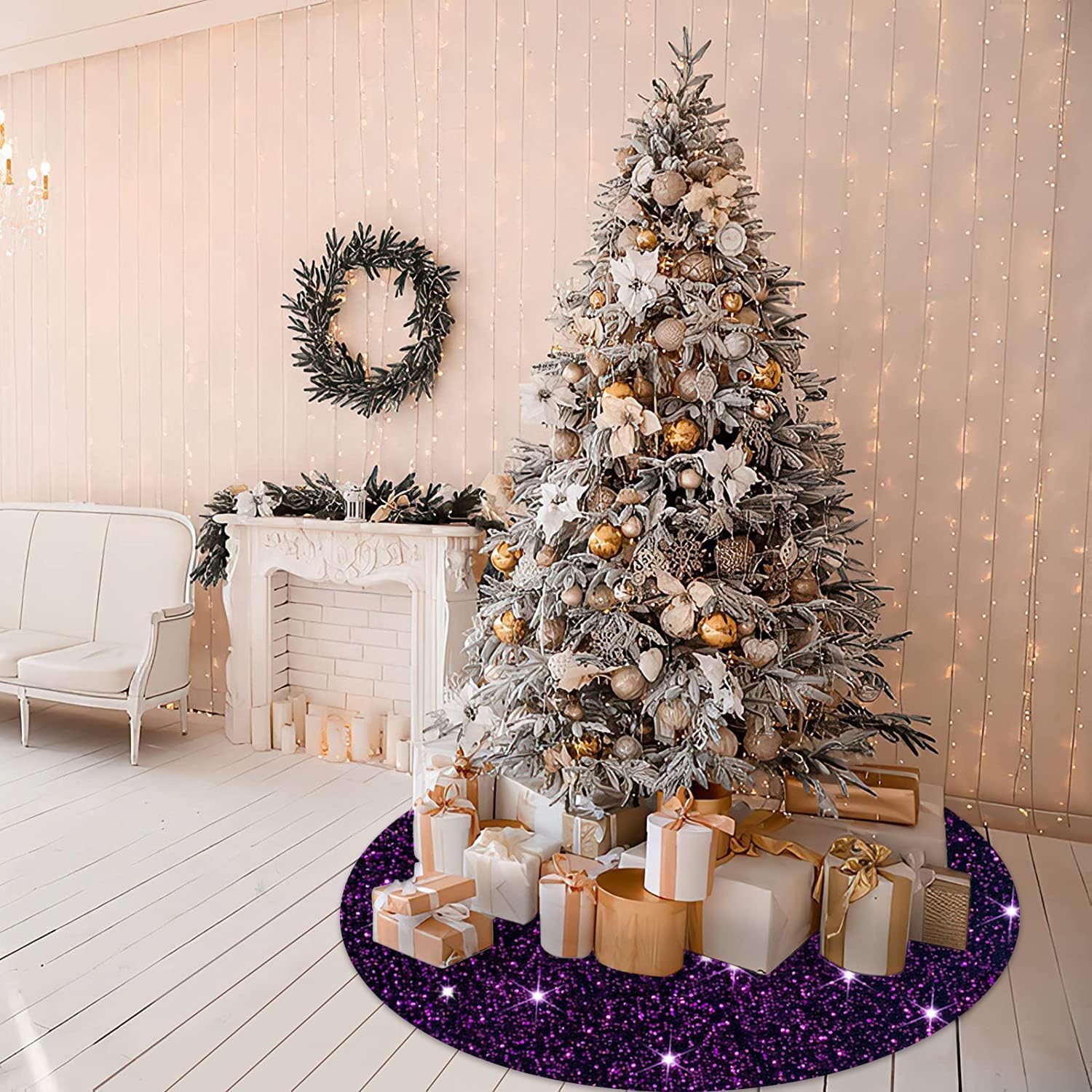 - ❄️【Size Detail - Xmas Tree Skirt 60 Inch】You will receive a 60 inches diameter purple glitter sequins tree skirt, fits under 8-10 foot tall trees. You can put some gifts, Christmas boxes, Christmas ball on the xmas tree cover mat. The sparkle velour Christmas tree skirts is perfect for decorating your home and become part of your holiday tradition.