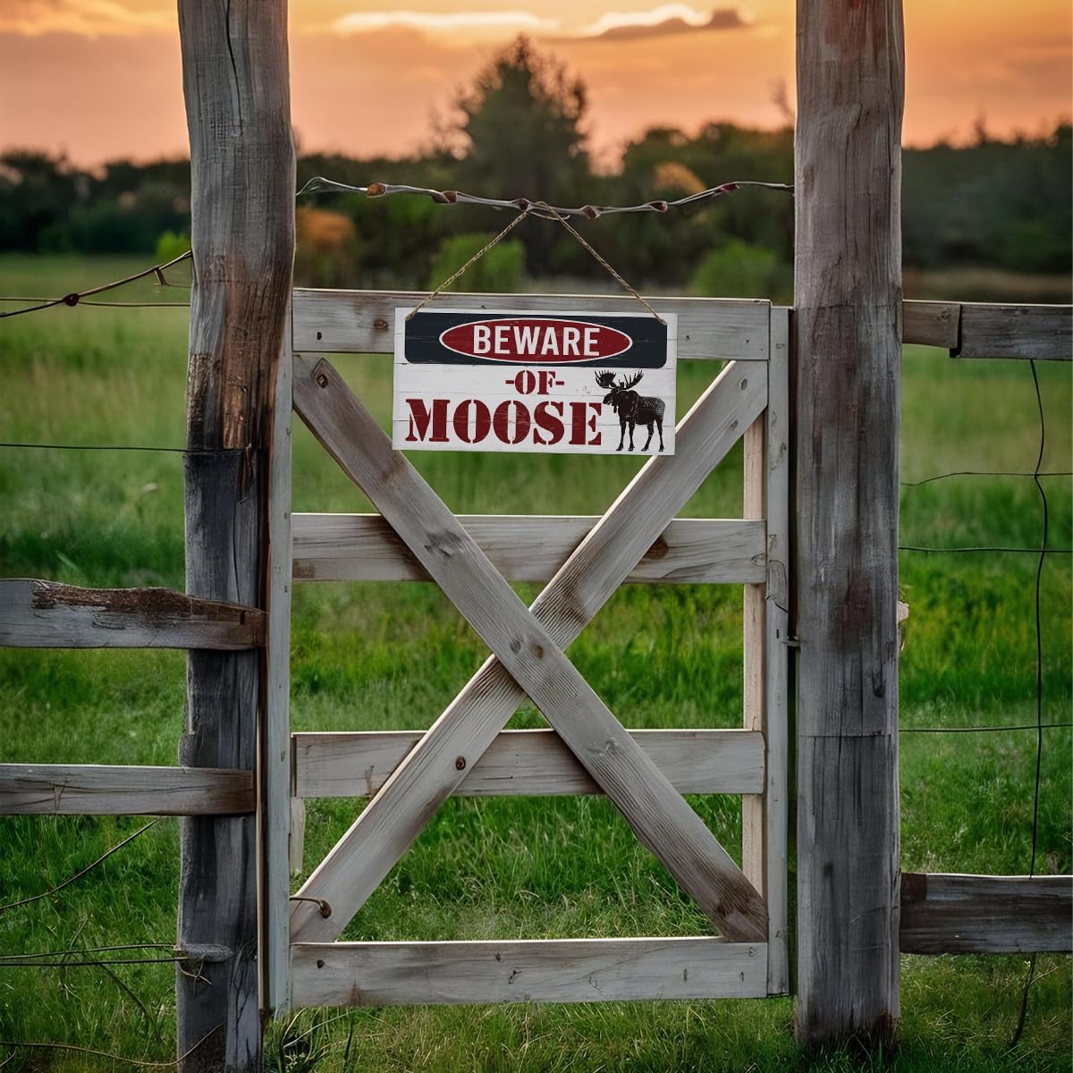 Vintage Moose Warning Sign - Decorative Wooden Plaque for Cabin, Lake House, Farmhouse Wall Decor