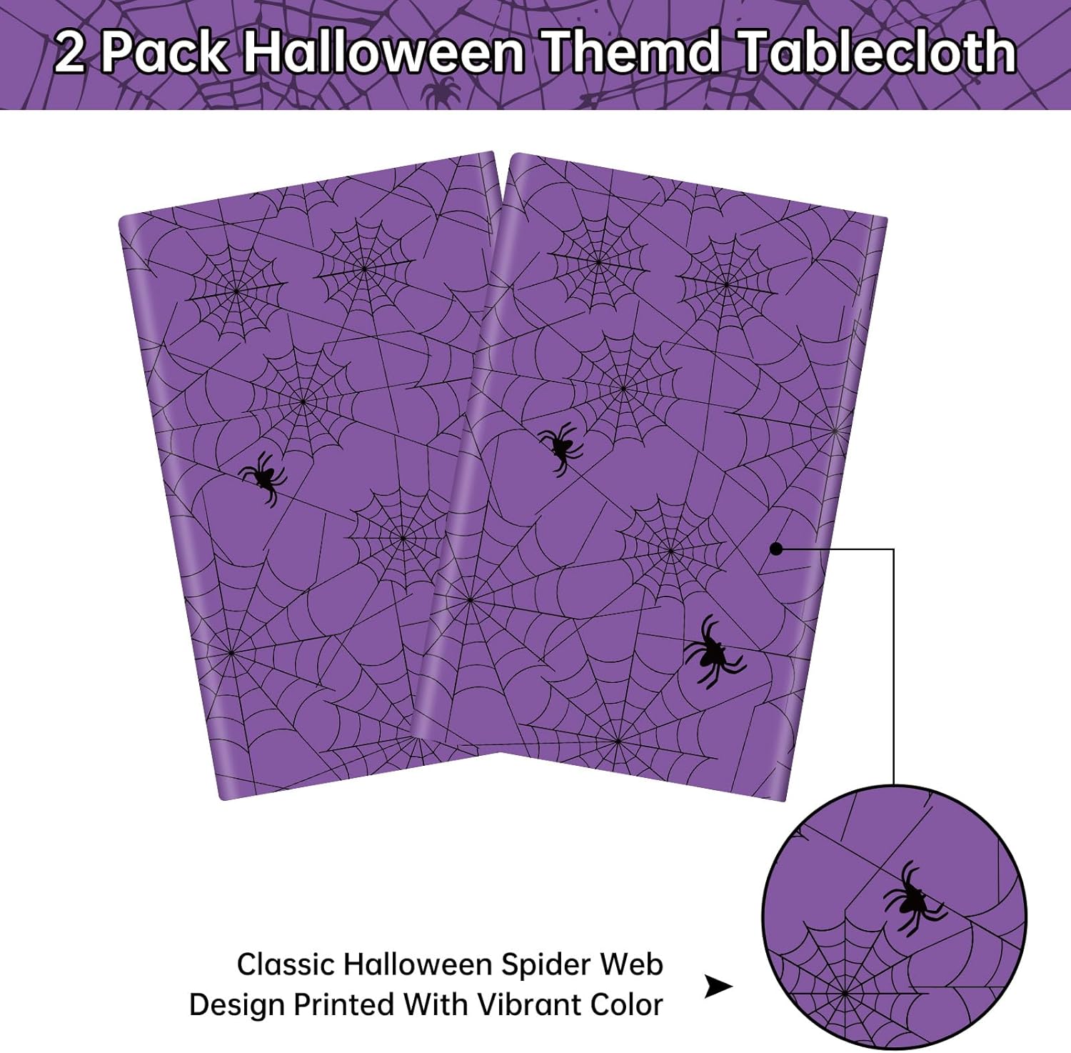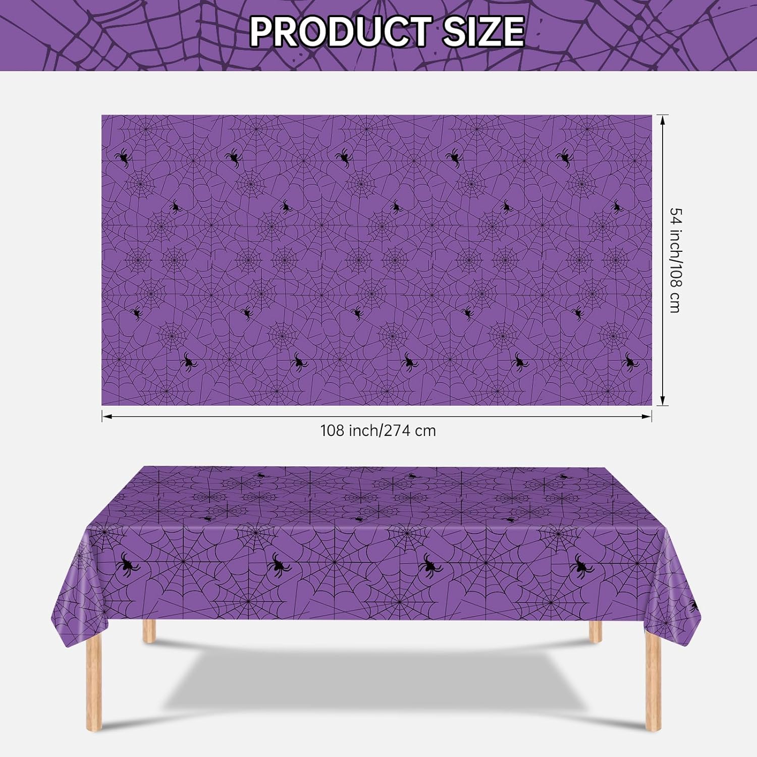 - 【Essential Halloween Tablecloths】- You will get 2 pieces Halloween spider web themed table covers, which can meet your different needs. You can use these purple halloween themed tablecloths to decor the tables, add a more funny and spooky atmosphere to your Halloween Party,making your 2025 halloween festival atmosphere more active.