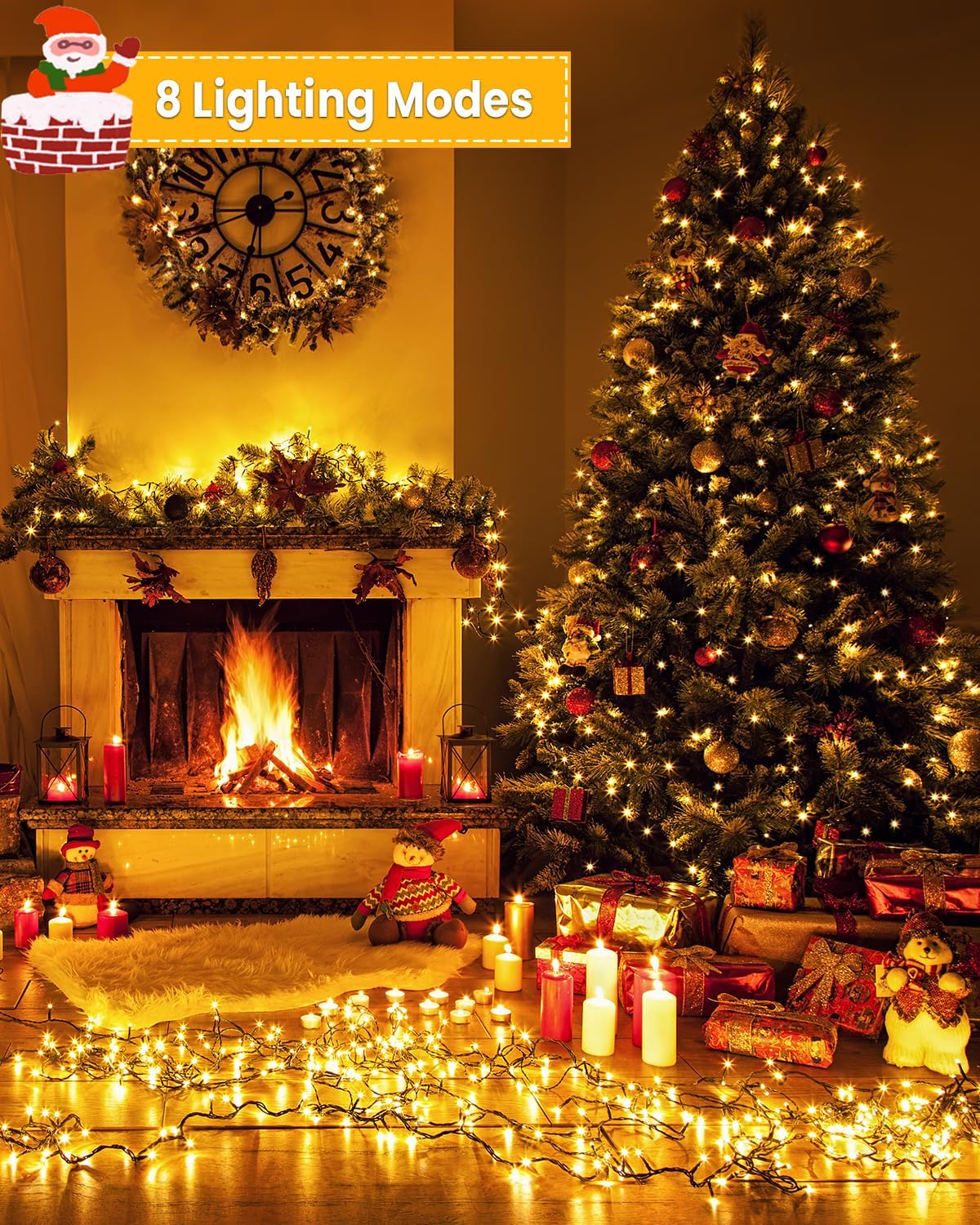 315FT 800 LED Christmas Tree Lights,String Lights Green Wire with 8 Modes, Timer and Memory, Plug in Outdoor Waterproof Twinkle Lights for Indoor Yard Xmas Holiday, Warm White