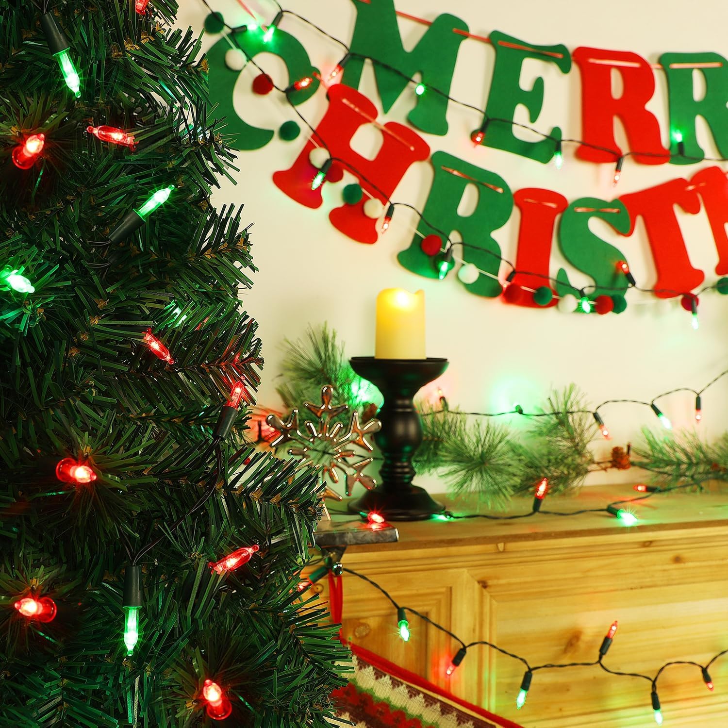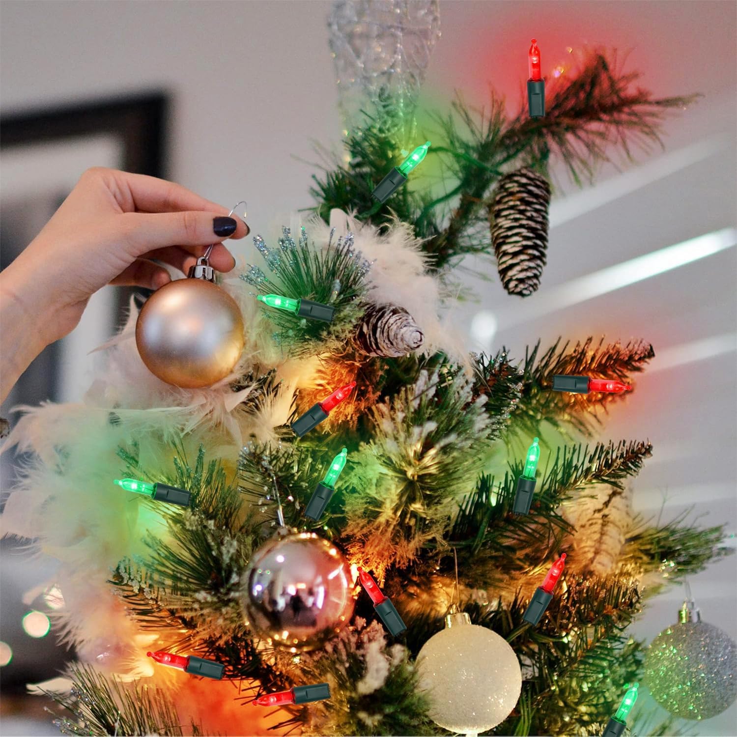 - [8 Lighting Modes]: WATERGLIDE 2 pack 50LED Christmas Red & Green mini string lights have 8 lighting modes for you to choose - Combination, In waves, Sequential, Slow Glow, Chasing/Flash, Slow fade, Twinkle/Flash, Steady on. Adjust the lighting modes by pressing the round button on the battery case