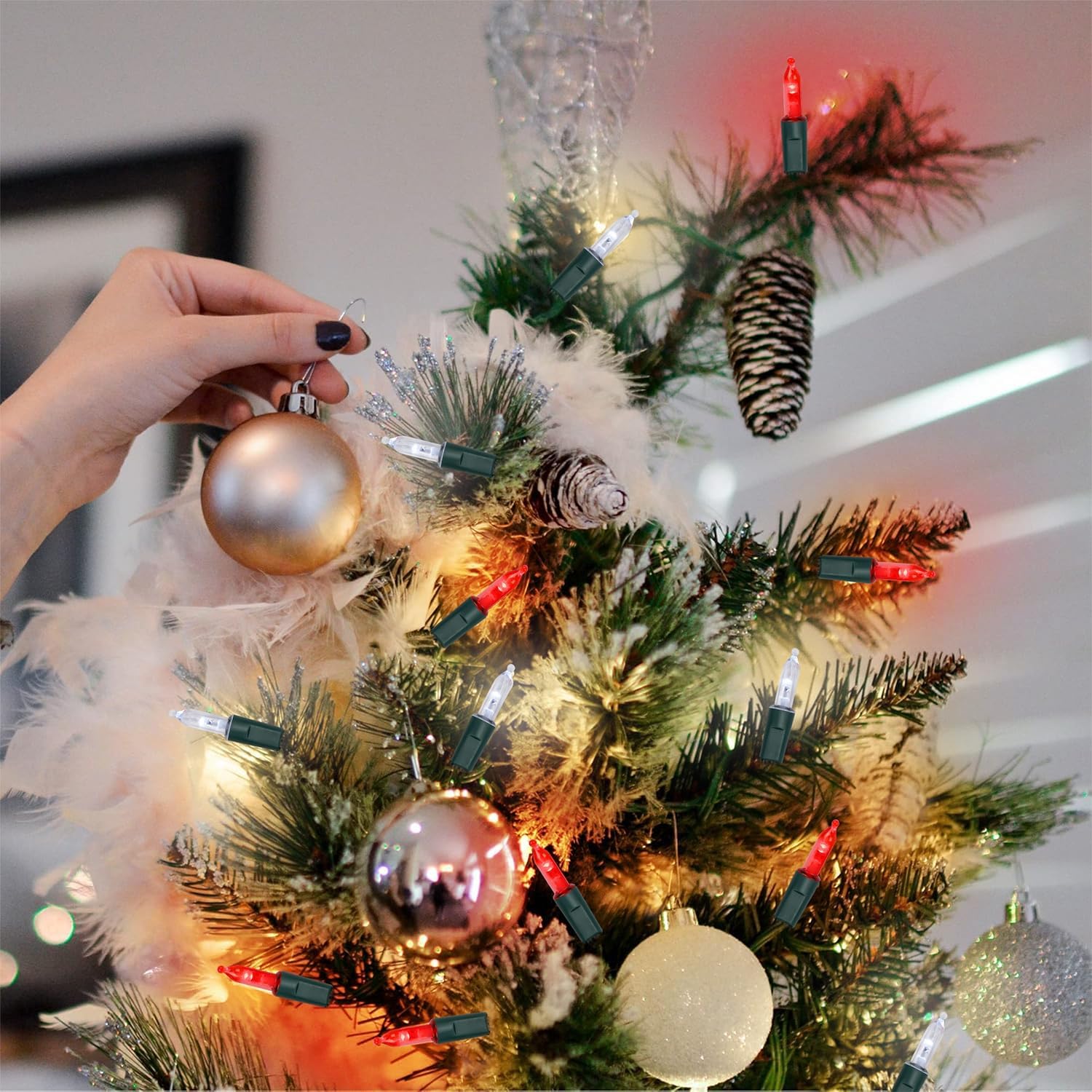 - [Timer Function]: Comes with built-in auto timer function(6 hrs ON, 18 hrs OFF), to avoid forgetting to turn off the Christmas lights. Just turn on the lights (any lighting mode) at 6 p.m. in the evening, and it will turn off at 12 a.m. at midnight, then auto on at 6 p.m. in the evening, this cycle repeats itself ad infinitum, no need to reset it everyday