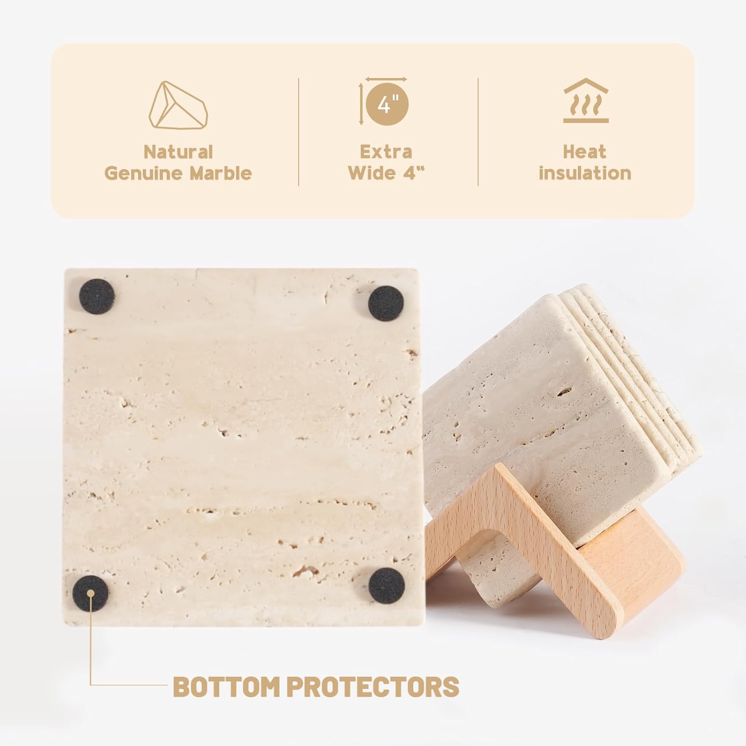 - Extra Wide ---- Set contains 6 pieces of marble coasters with size 4 x 4 x 0.35 inch, the perfect size will comfortably hold any wine glass, cup, or coffee mug, providing ample space to catch drips and condensation, making it versatile for normal drinkware