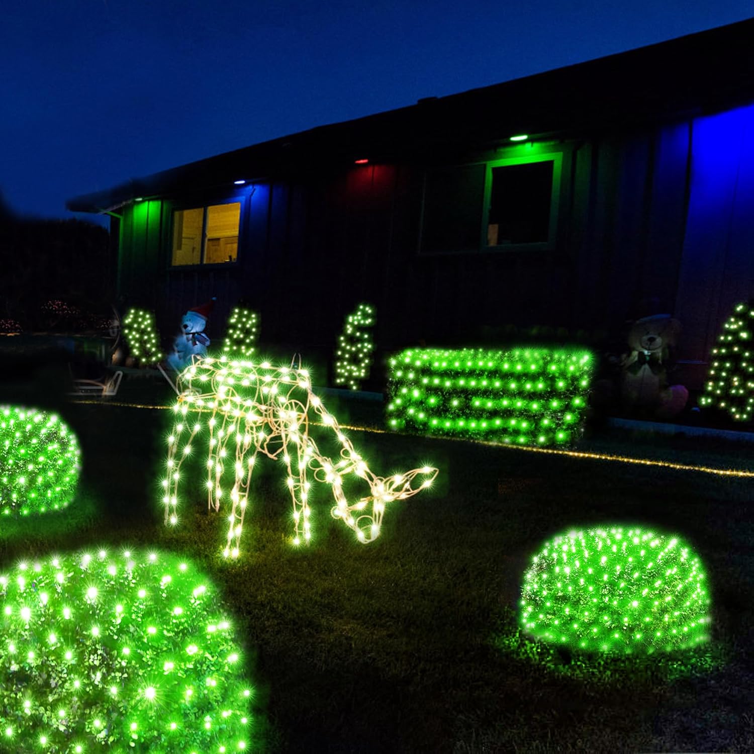 - Make Christmas Decorations Faster: Compared with traditional single string lights, our Xmas mesh string lights can greatly save our Christmas decorations time. Just unfold it gently and spread it on the bushes, grass, trees, and fences that need to be decorated, it's done! Without a lot of circles like a single string light.