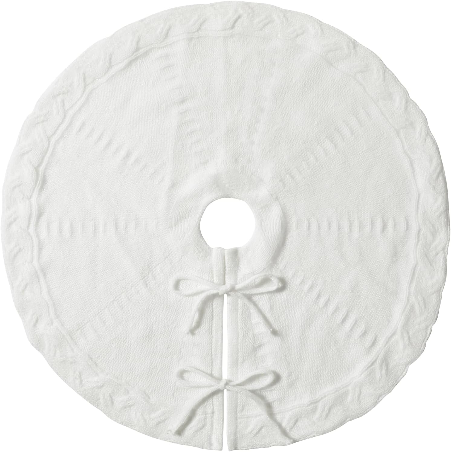 - ➤Design:The white knit tree skirt features a ribbed and halter weave design with two cable ties at the opening that hold the tree skirt in place under the tree, preventing any movement or sliding. White tree skirt are perfect for Christmas and winter everyday decoration.