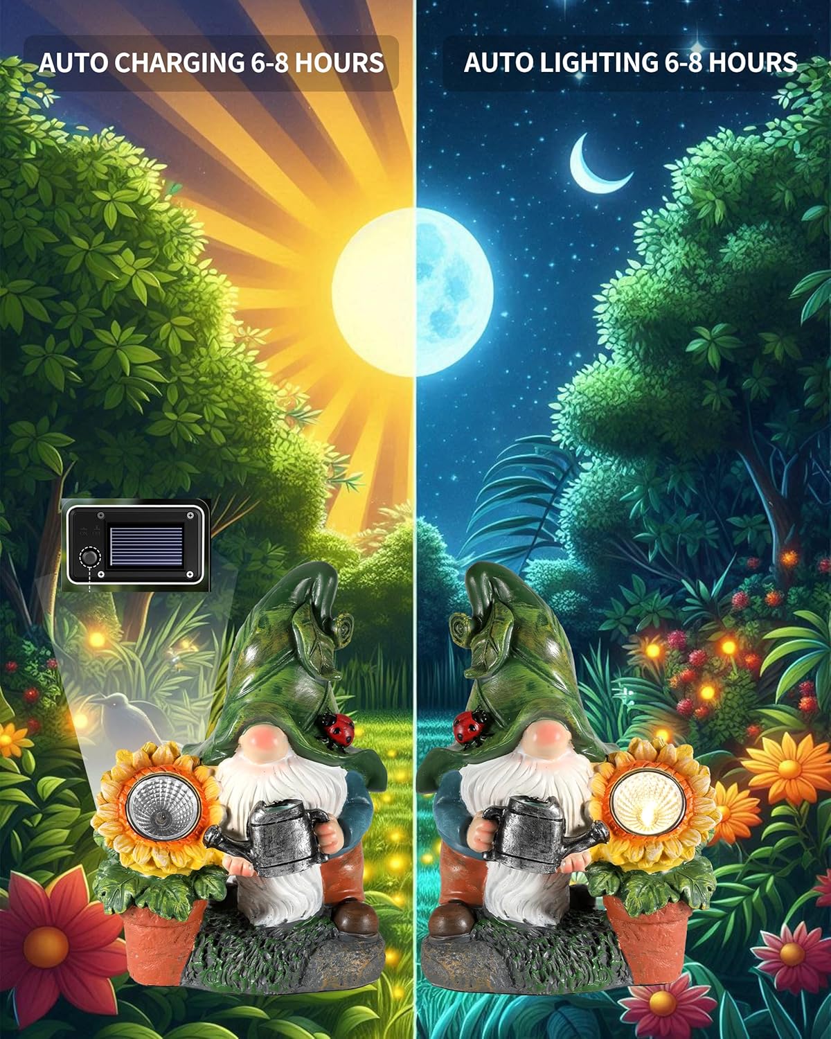 - Charming Design: Features a classic lawn gnome holding a flower with a vibrant detail, adding a whimsical touch to your garden or outdoor space.