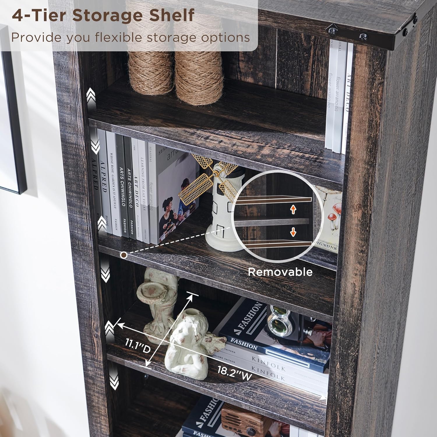 - Multi-purpose: Simple and rustic design matches well with home decoration. The tall bookcase both can be placed in the living room for decorative items, in the kitchen for kitchenware and food and in the school library and classroom as a book corner..