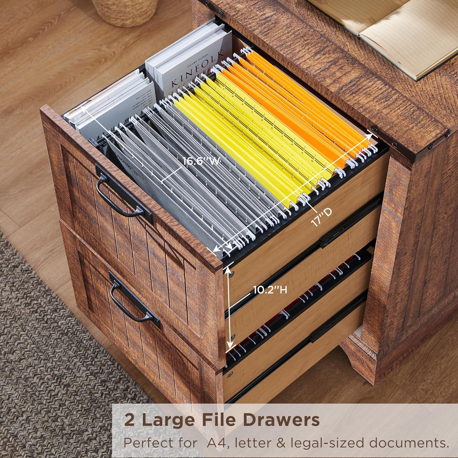 - Two Large File Drawers: The office bookshelf has two large and deep file drawers (overall size is 16.6"W*17"D*10.2H) and are equipped with adjustable file hangers to accommodate both legal-or letter-sized documents. Drawers are set on full-extension, metal ball-bearing glides for smooth movement and easy removal.