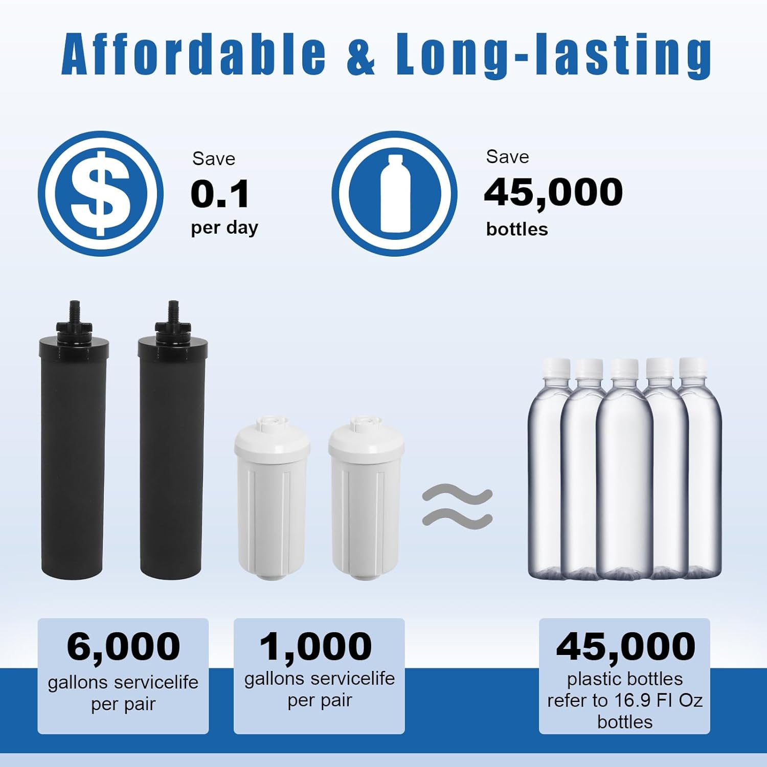 - Compatibility: Perfectly compatible with Berkey water filters, including Travel, Large, Royal, Crown, and other gravity filtration models, these replacement filters are designed to fit seamlessly with genuine black and white filters