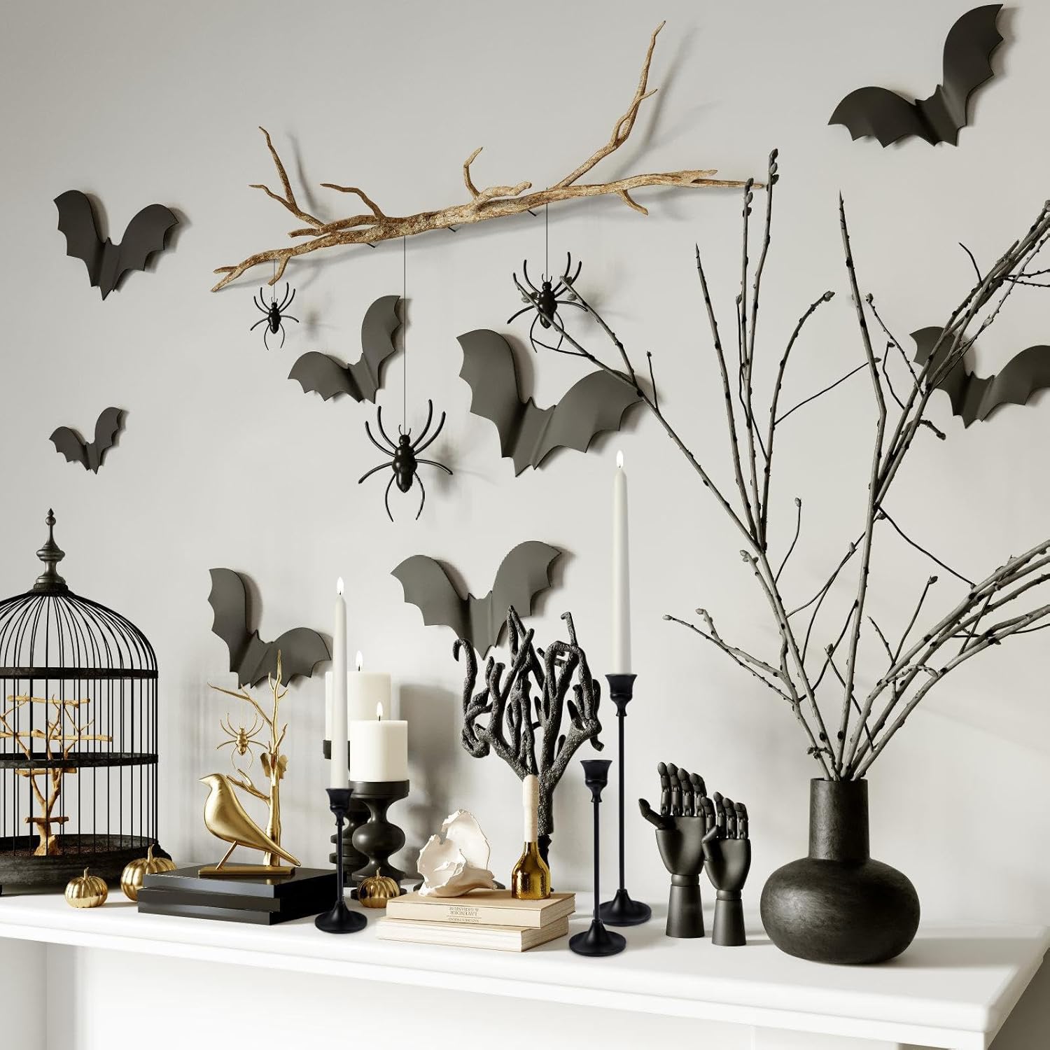 Metal Candle Holders for Candlesticks Taper Candlestick Holders Set Vintage Decorative Centerpiece Candelabra Tall Candle Stands for Halloween Thanksgiving Christmas (Matt Black, 2 Sets (6 pcs))