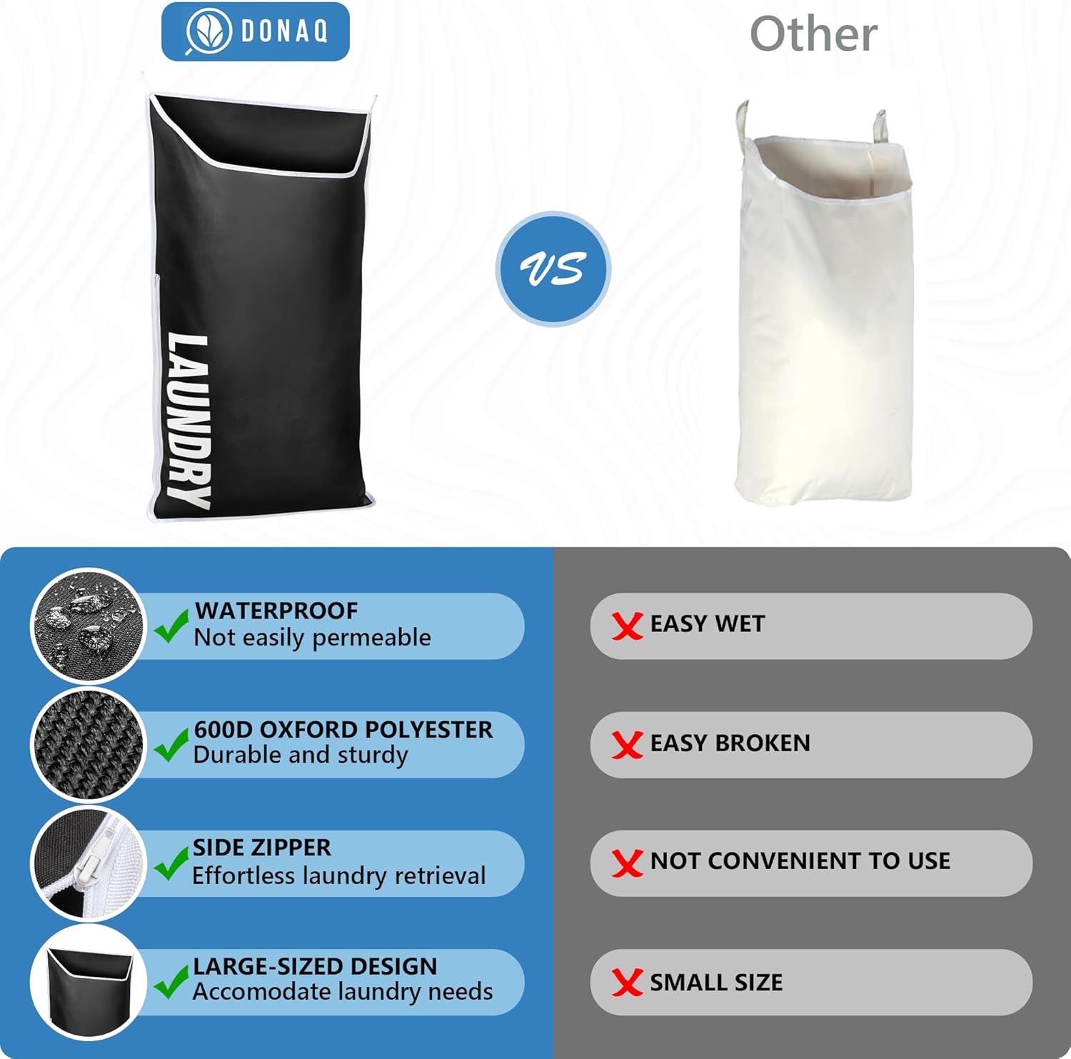- 𝗕𝗨𝗜𝗟𝗧 𝗧𝗢 𝗟𝗔𝗦𝗧: Designed for durability, our hanging laundry hamper withstands heavy laundry loads. It provides reliable performance and long-lasting use for years to come, making it a dependable addition to your home.