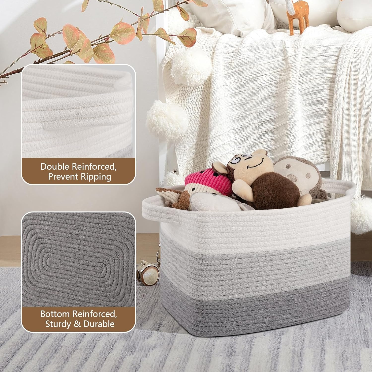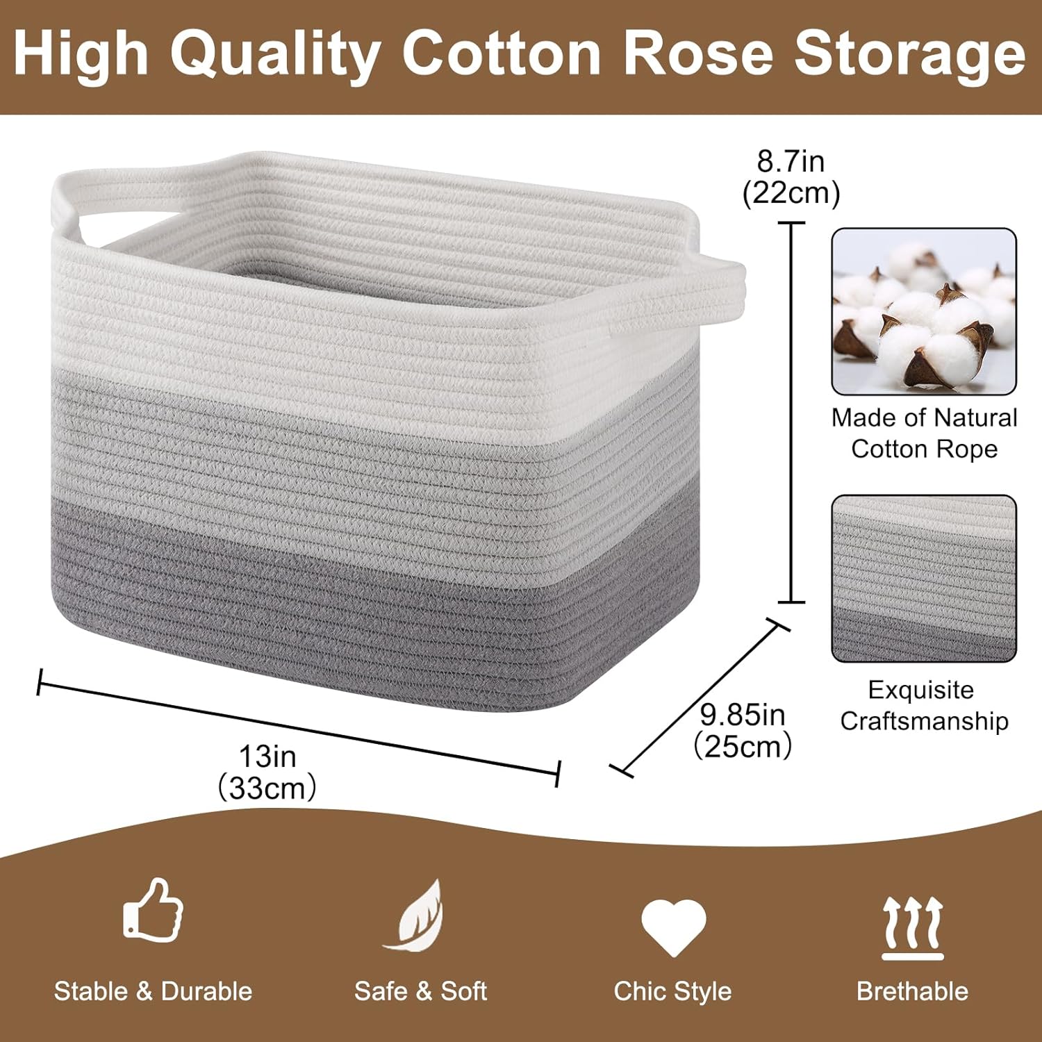 - Soft & Friendly: Woven cotton thread is very soft and skin-friendly. No odor or sharp corners, safe for kids, baby, elders and pets. Ideal for nurseries and playrooms. The soft rope baskets will not make scratches on your floor, wall or your furniture