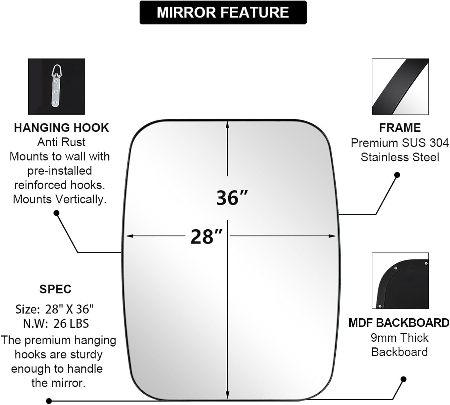 - Transform Spacious Environments: Redesign your spacious bathroom with the large 36x48 inch mirror. Its generous size and premium craftsmanship create a luxurious feel, reflecting light and space to amplify the room's aesthetic appeal and functionality