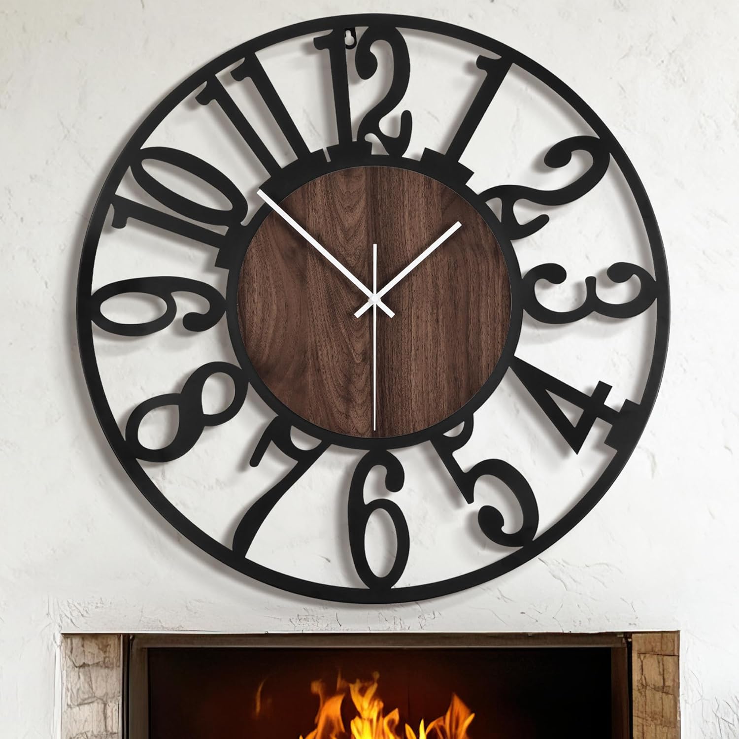 - [Quality Hndmade Clock] -The large black metal clock has a wood face-out retro design. The strength and retro appearance of the Big Number wall clock are ensured by the use of high-quality 2cm thicker handmade iron materials in the handcrafted, metal frame and showing the wooden face.