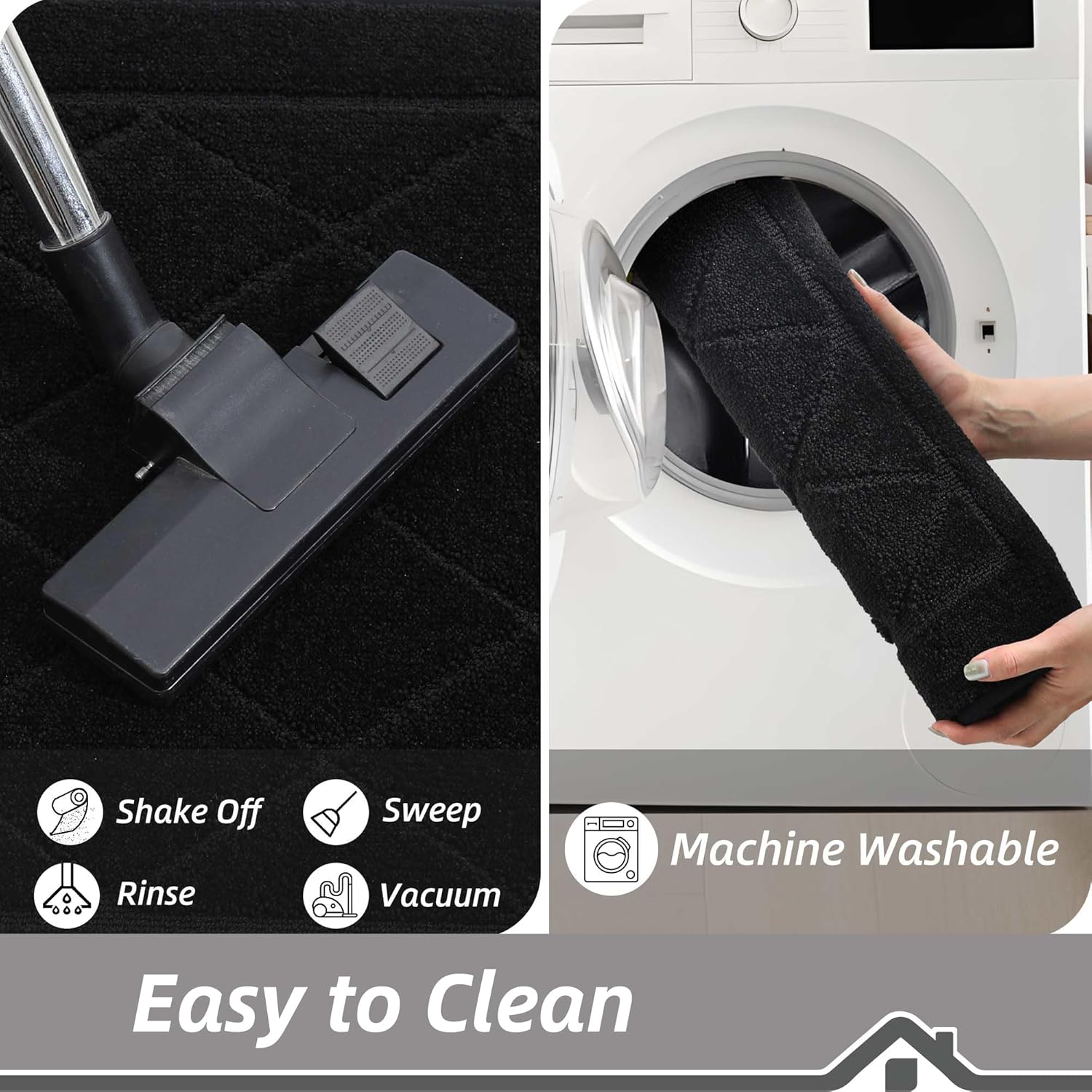 BEQHAUSE Dirt Trapper Door Mat 36" x 60", Doormat Non-Slip Entryway Rugs Washable, Dog Door Mat Stain Resistant and Absorbent Welcome Floor Mat for Front Back Door, Muddy Wet Shoes & Paws, Black