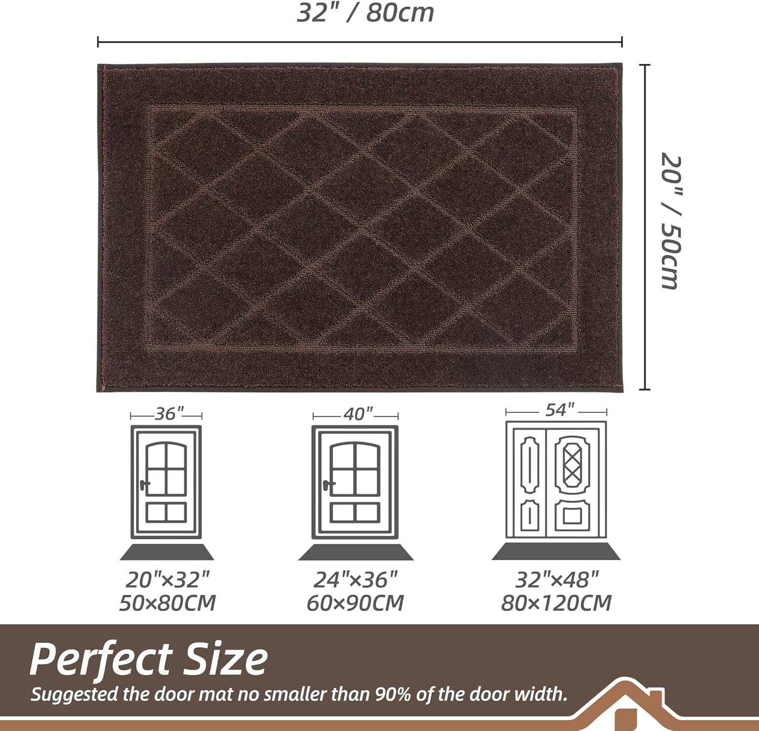 BEQHAUSE Dirt Trapper Door Mat 20" x 32", Doormat Non-Slip Entryway Rugs Washable, Dog Door Mat Stain Resistant and Absorbent Welcome Floor Mat for Front Back Door, Muddy Wet Shoes & Paws, Brown