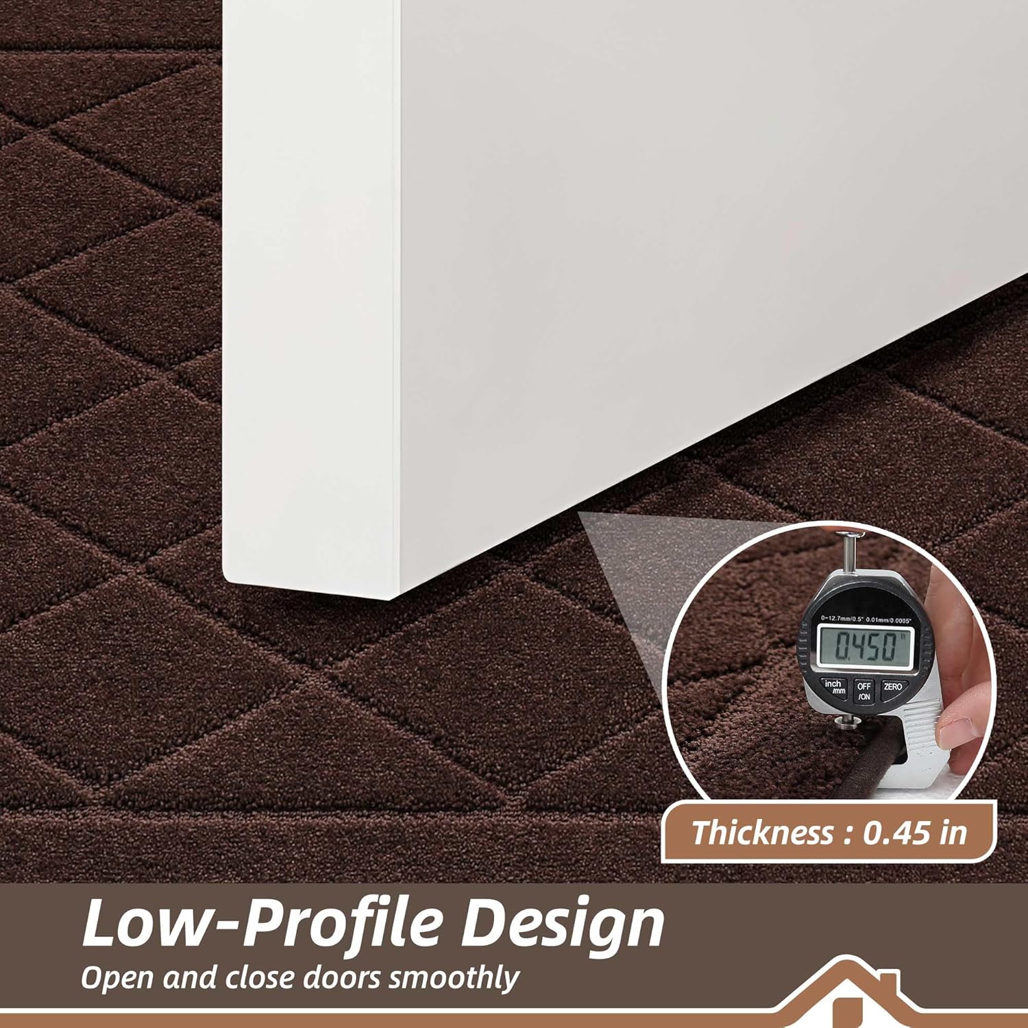 - Stylish and Low Profile Design: Fashionable geometric patterns are suitable for most kinds of home décor. Our doormats measure 20" x 32" x 0.45", low-profile design and reinforced overlock edges to ensure that doors won't get stuck or the door rug go curling. Note: Please confirm the height of the door gap before purchasing