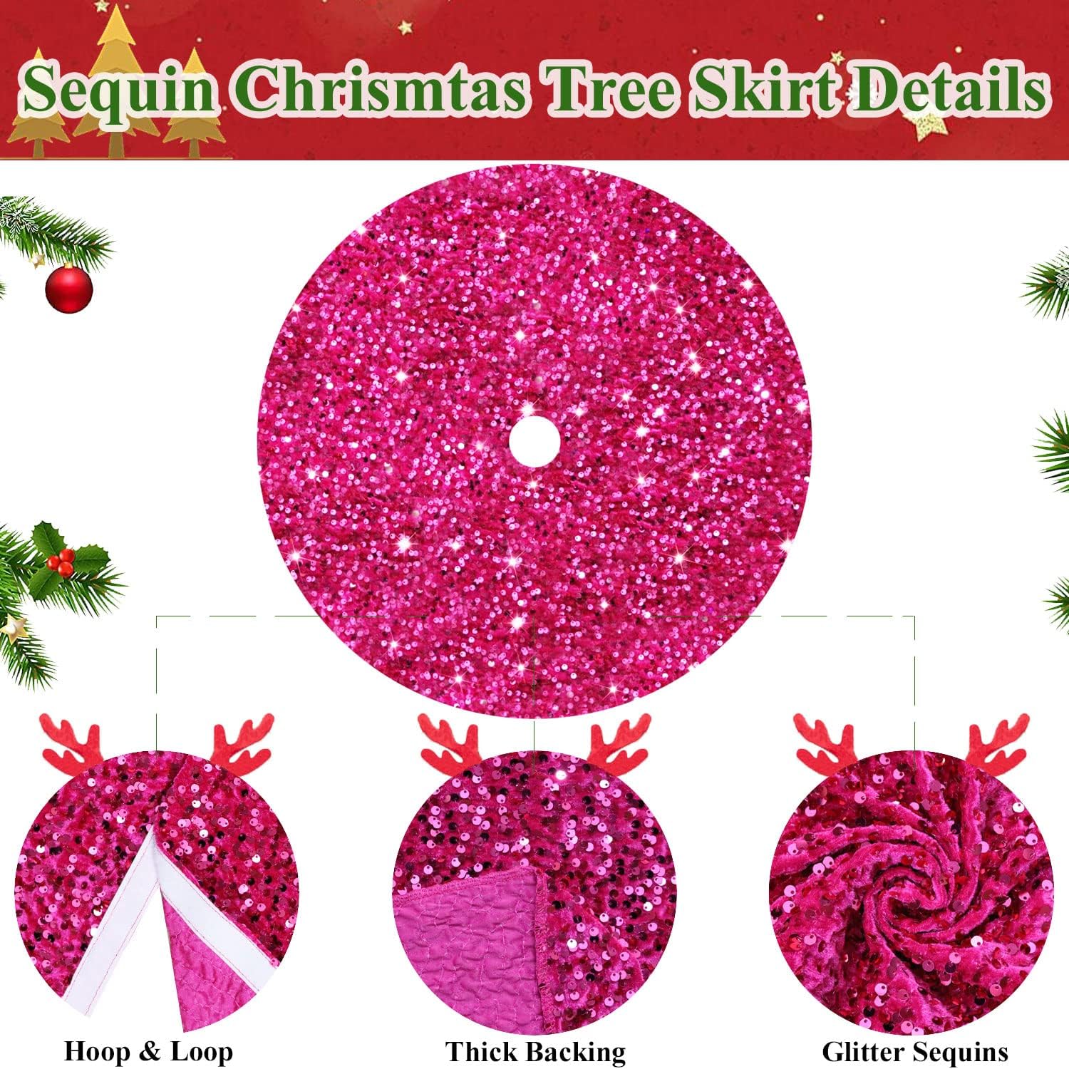 - ❄️【Sturdy Material - Hot Pink Tree Skirt】Our sequin Chritmas tree skirt is made of premium 5mm sequin fabric and thick velvet material, which can show bright color at any angle. Different from the traditional glitter trees skirt, this Christmas tree mat won't fall off sequins, more elegant and shiny, adding festive fun to your home.