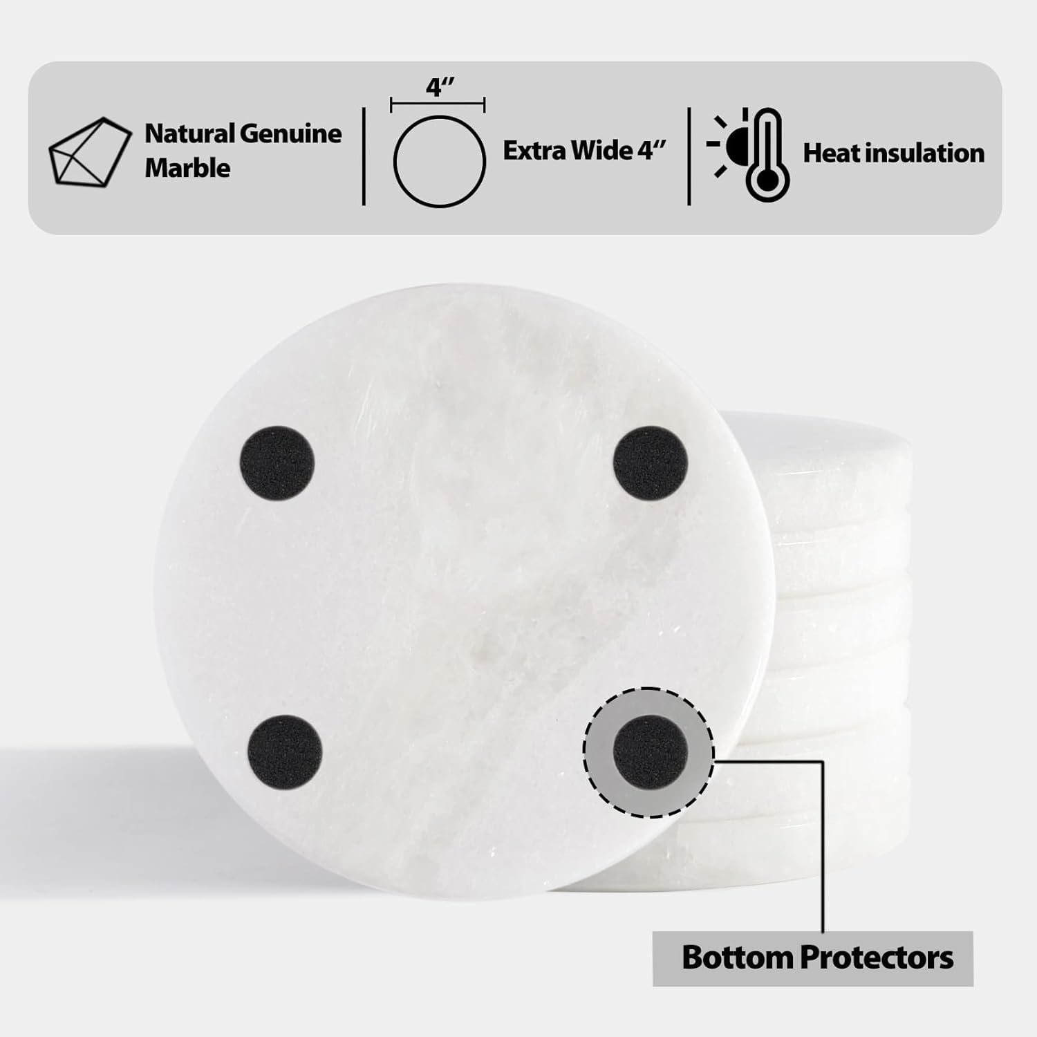 - Extra Wide ---- Set contains 6 pieces of marble coasters with size 4 x 4 x 0.35 inch, the perfect size will comfortably hold any wine glass, cup, or coffee mug, providing ample space to catch drips and condensation, making it versatile for normal drinkware