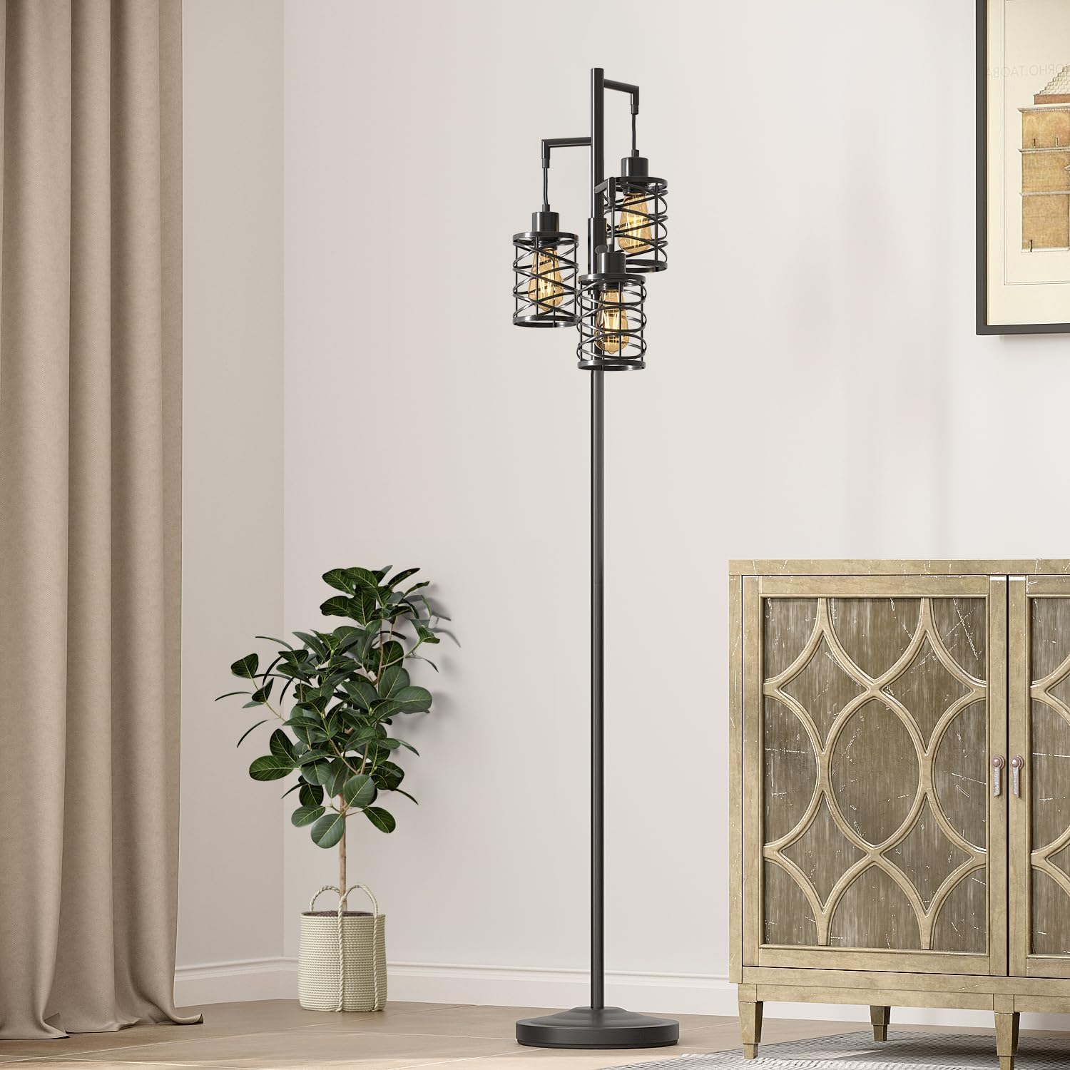Oneach 70" Industrial Floor Lamp, Stepless Dimmable Standing Lamp with 3 Bulbs, Farmhouse Corner Standing Tree Lamp for Living Room, Tall Lamps for Bedroom, Office, Study Room, Dining Room, Black