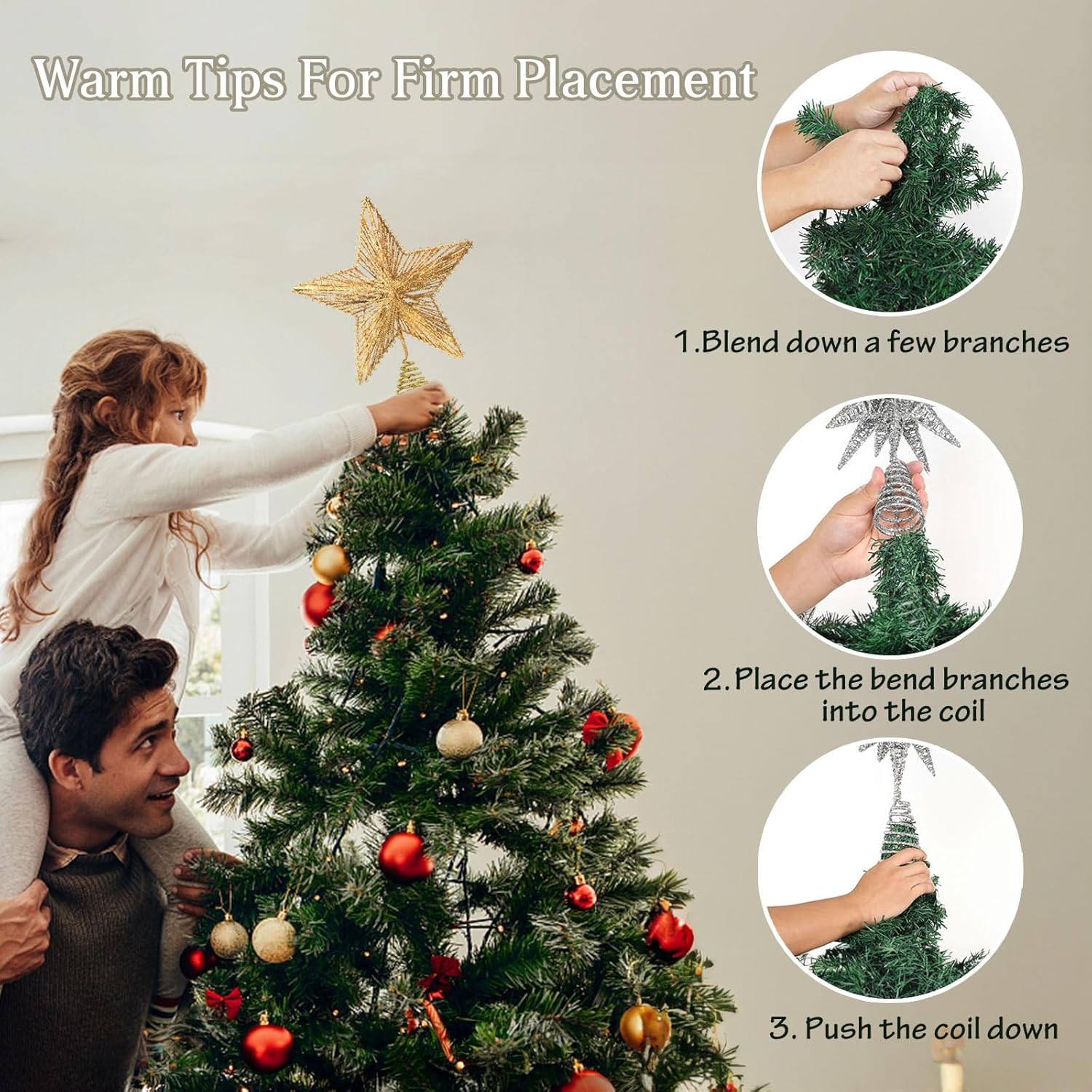 - ๐ PERFECT DECOR - Beautiful tree topper with glitter powder on surface, bringing you a warm and natural Christmas atmosphere. Perfect for home, office, store, restaurant, mall decoration. A fun and festive addition to any holiday and seasonal decor, suitable for Christmas theme party, Halloween, birthday, Thanksgiving, housewarming decoration and gift