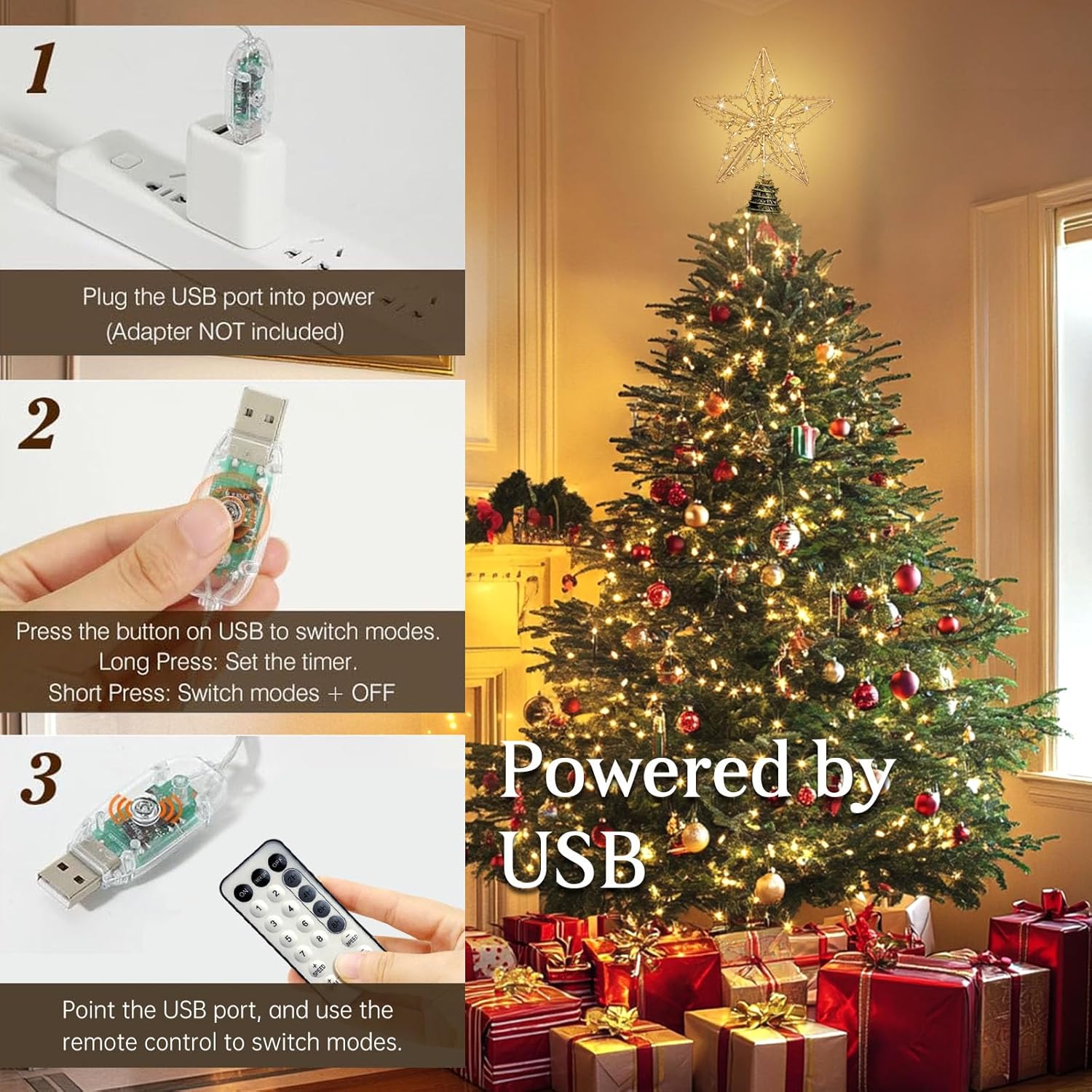 - ๐ EASILY SETUP: 5 meter long line, which means it works great either indoor or outdoor.The tree topper easily attaches to the tree, due to the stable spiral base and construction.