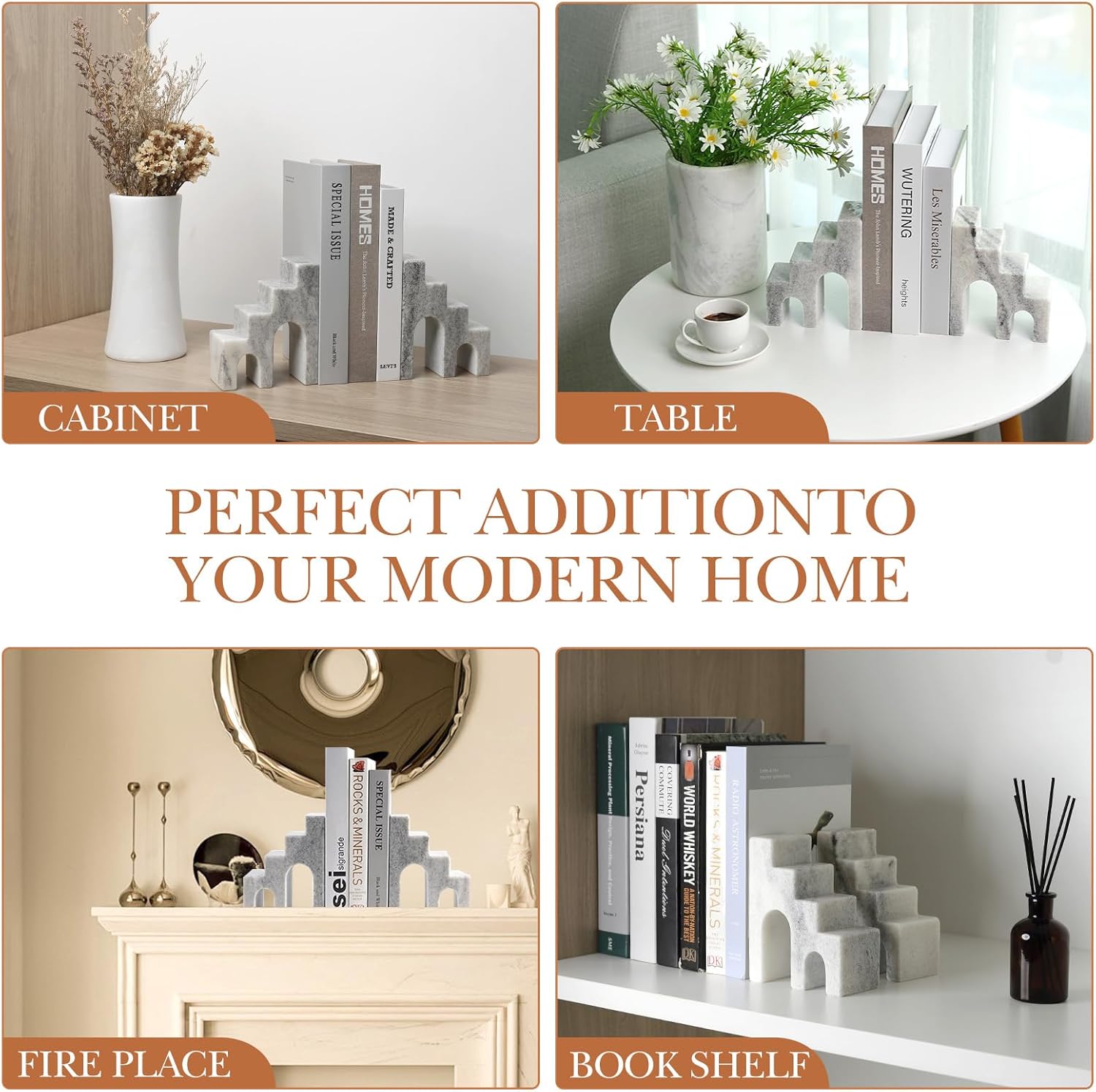 - Durable and Practical ---- The marble bookends are great for organizing your books, CDs, DVDs, and magazines, these book stoppers will make your reading time better and your bookshelf more tidy and organized. The aesthetic book ends also maintain long-term stability and will not be deformed by external factors, ensuring that your books are always securely placed.
