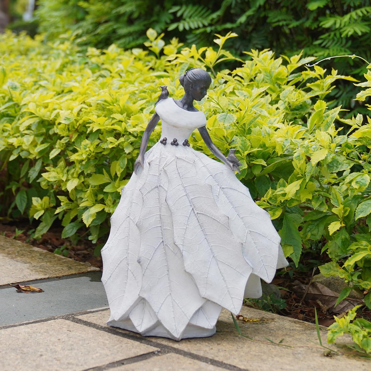 - GARDEN STATUE:This ruffle gress girl statue product is originally designed by the designer. The dress is in the shape of ruffles and looks very artistic. It can add a different kind of beauty to your room or garden.
