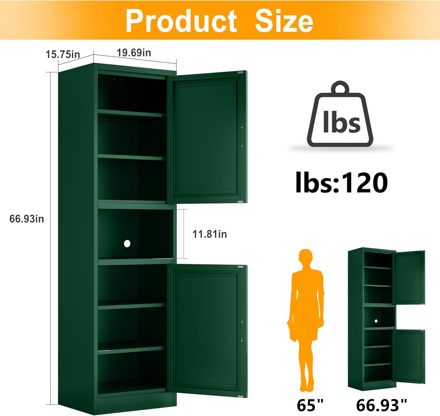 - ๐ใLarge Storage Spaceใ: The product size of the metal storage cabinet is 66.93"H x 19.69" W x 15.75 "D, which can be used in bathrooms, offices, study rooms, livingrooms, kitchens, classrooms, etc.