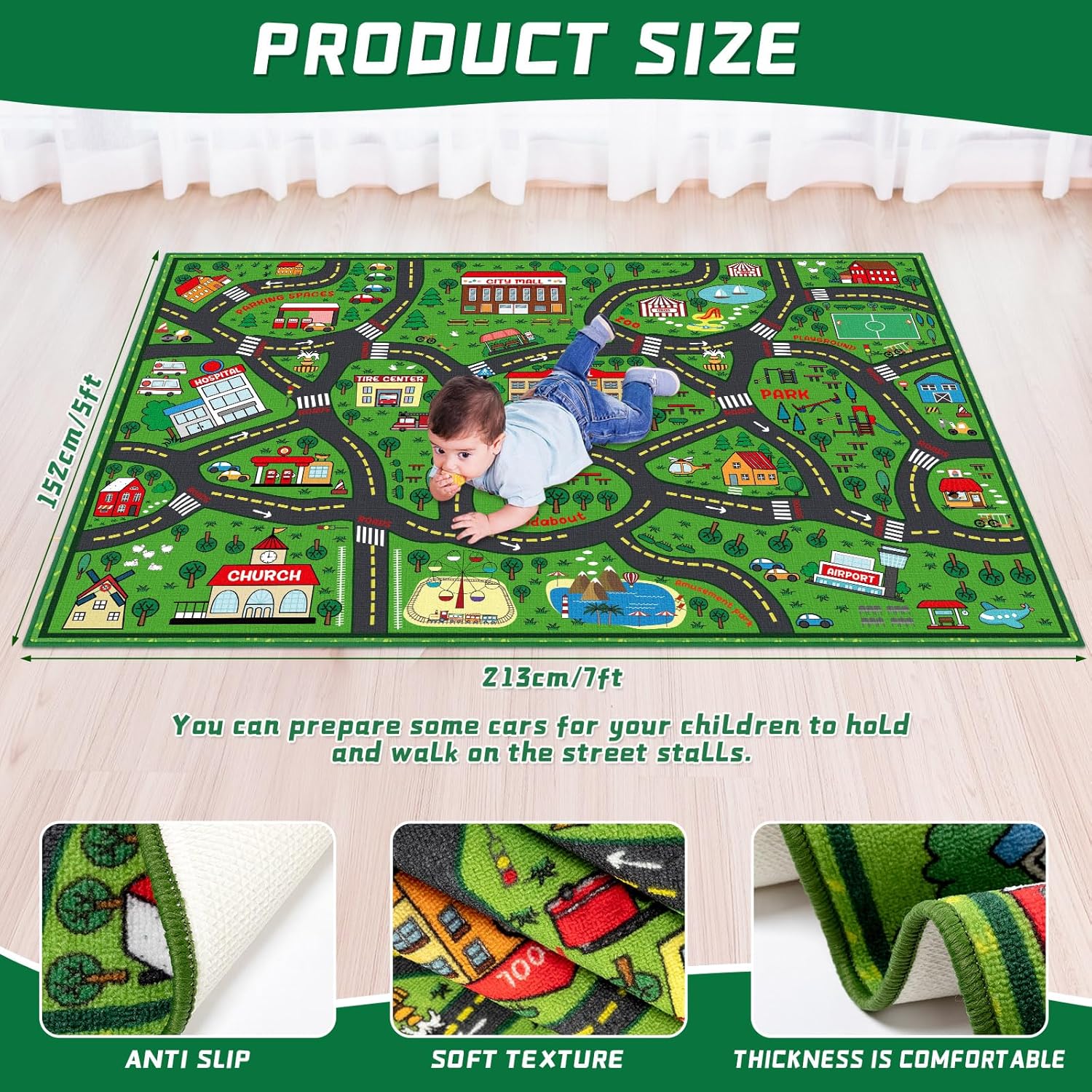 - Large Play Area Rug: this kid city life carpet is 5 x 7 ft/ 152 x 213 cm, provides ample space for multiple children to play together; Your kids will own a jumbo play field that is more than sufficient for your tiny tots to set up their small world of city pretend play