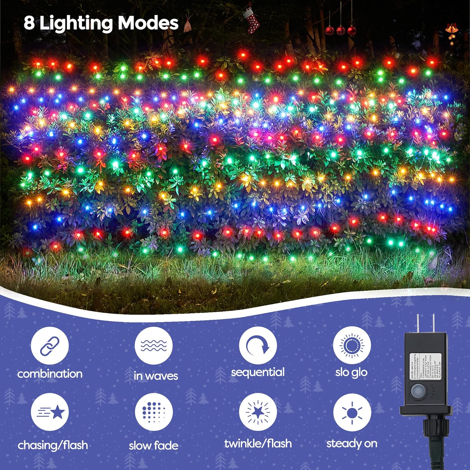- 8 Lighting Modes &Timer Function: The outdoor Christmas netting lights features with 8 different lighting modes for you to choose from. It also comes with timer function, 6 hours on and 18 hours off. (long press the button, when it becomes green light, timer is activated.)