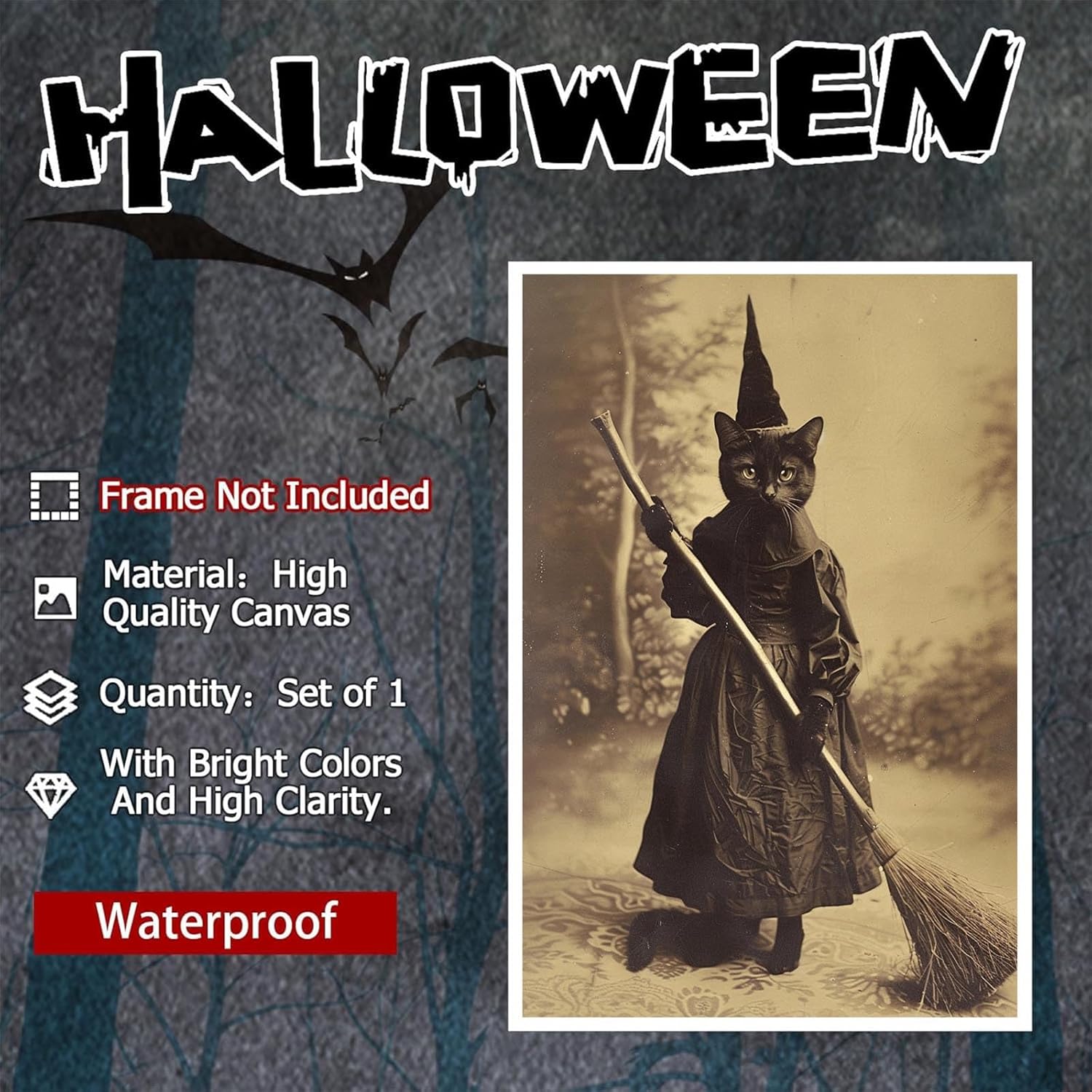 Halloween Decor Posters Black Cat Witch Canvas Wall Art Vintage Spooky Print Of Gothic Room Family Dark Academia Decorations Creepy Picture Poster Aesthetic 24X36inch Unframed