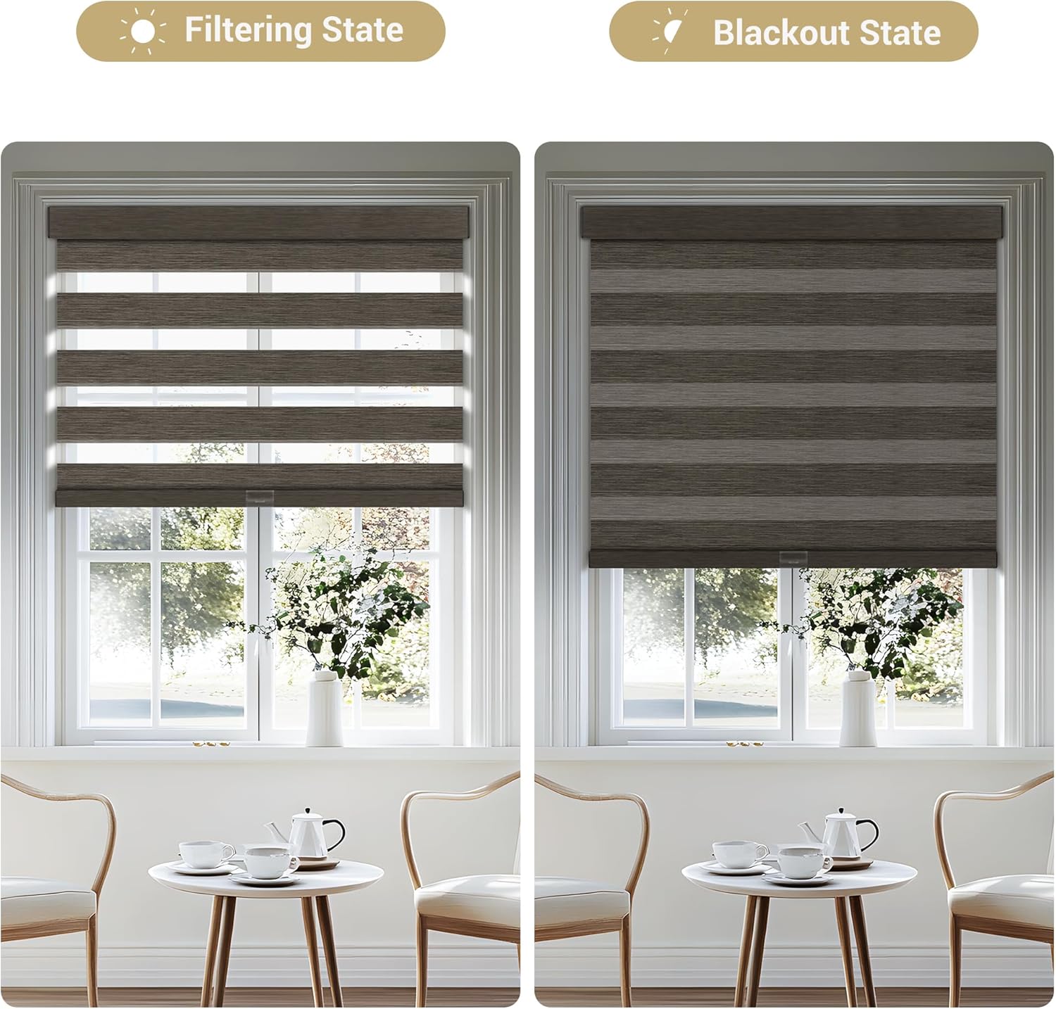 Cordless Zebra Blinds for Windows, Blackout Interior Blinds,Easy to Install,UV Protection,for Offices and Home,Custom Roller Shades, Mousse Dark Bown,30" W x 56" H