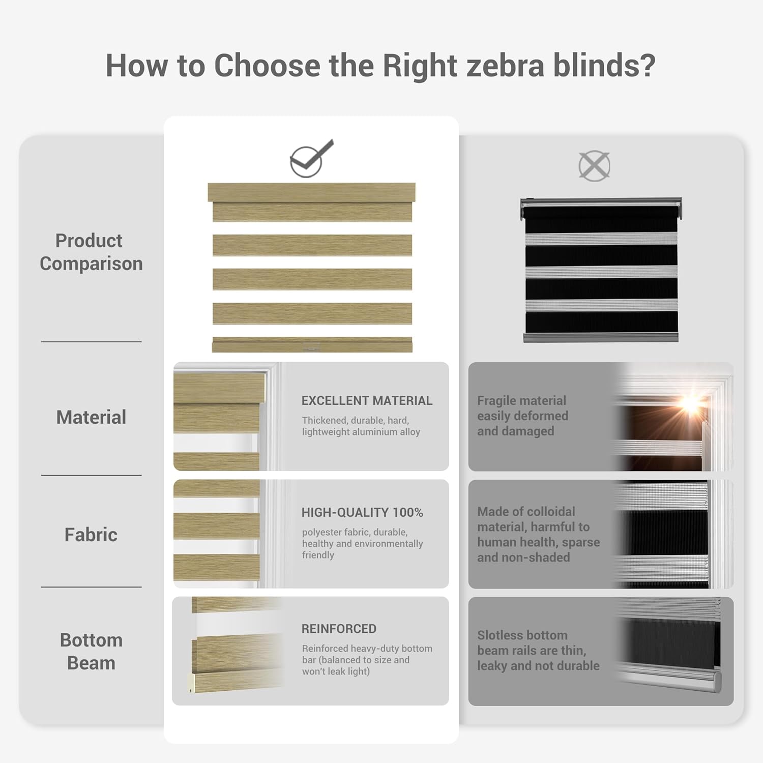Cordless Zebra Blinds for Windows, Blackout Interior Blinds,Easy to Install,UV Protection,for Offices and Home,Custom Roller Shades, Mousse Light Bown,29" W x 56" H