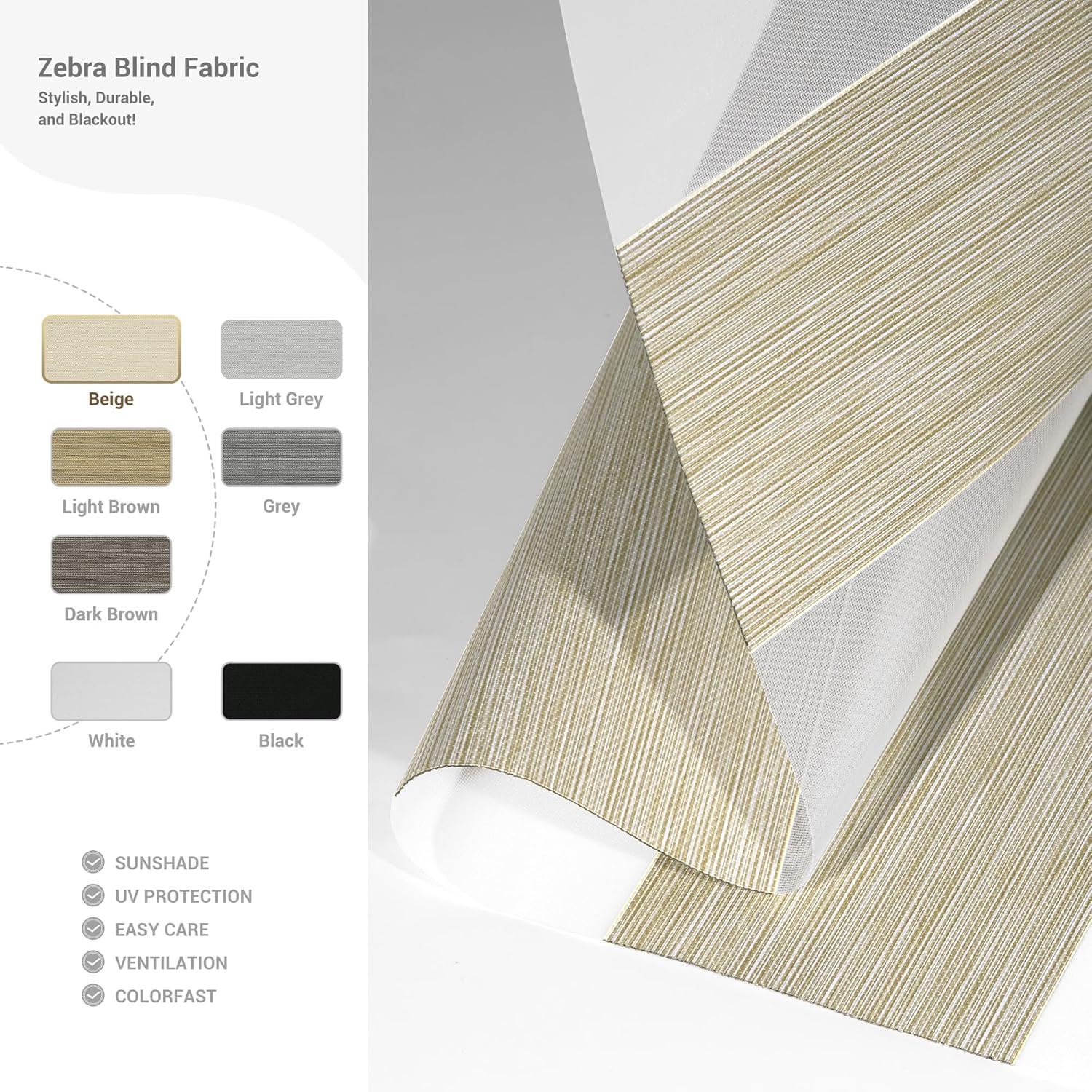 Cordless Zebra Blinds for Windows, Blackout Interior Blinds,Easy to Install,UV Protection,for Offices and Home,Custom Roller Shades, Mousse Beige,56" W x 56" H
