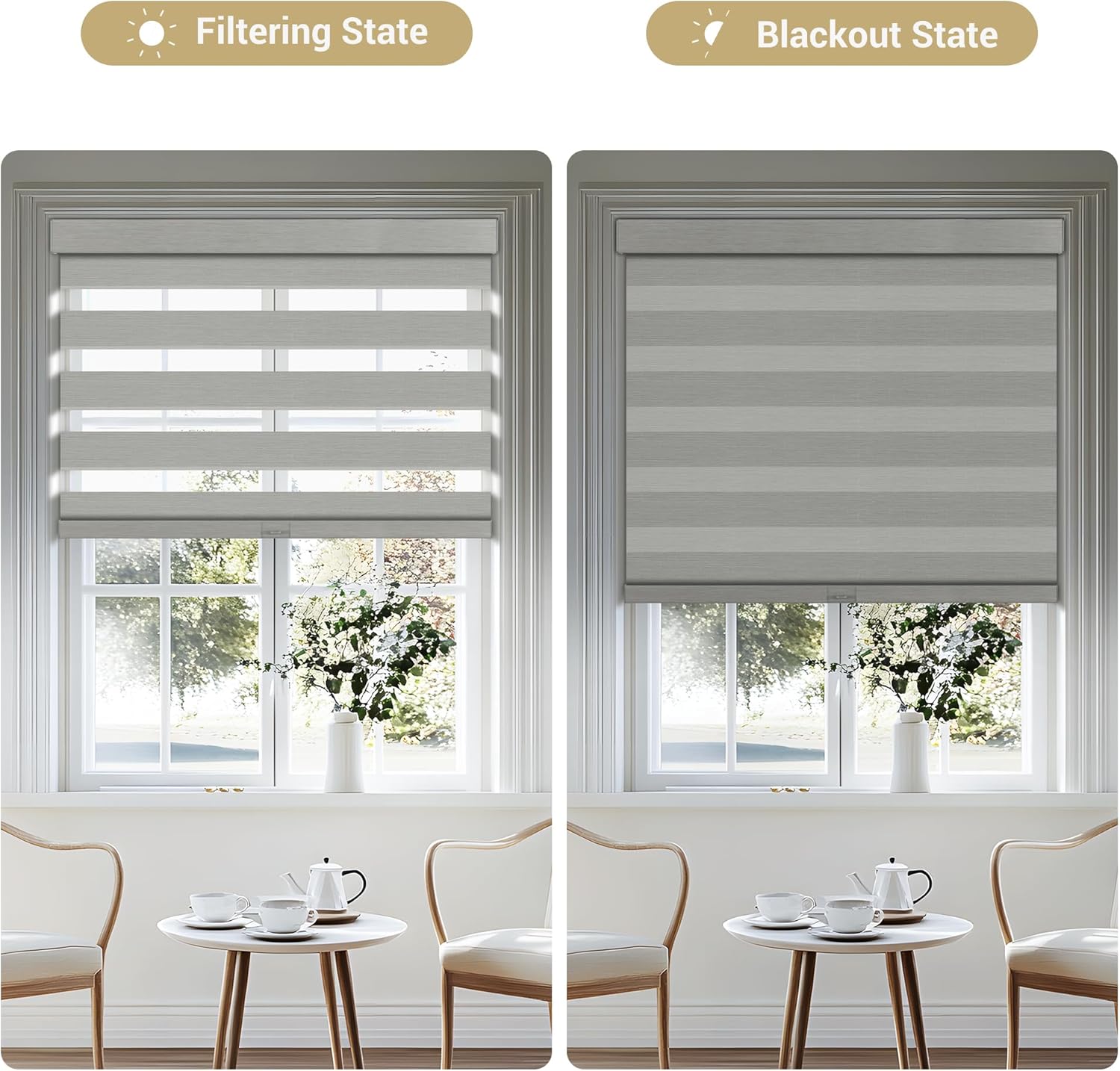 Cordless Zebra Blinds for Windows, Blackout Interior Blinds,Easy to Install,UV Protection,for Offices and Home,Custom Roller Shades, Mousse Light Grey,39" W x 36" H