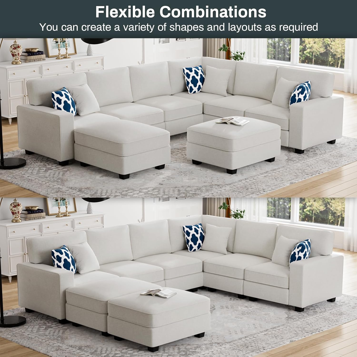 - 【Flexible Combination】The u shaped couch can rearrange the seats, you can adjust it as you like to create various shapes and layouts, whether it's combined into an L shaped sofa or a U shaped sofa, this sofa couch can fit your space perfectly. This flexibility not only brings more choices, but also saves your budget, by adding additional modules, you can easily expand the capacity and functionality of the sofa without having to replace the modular sofa completely.