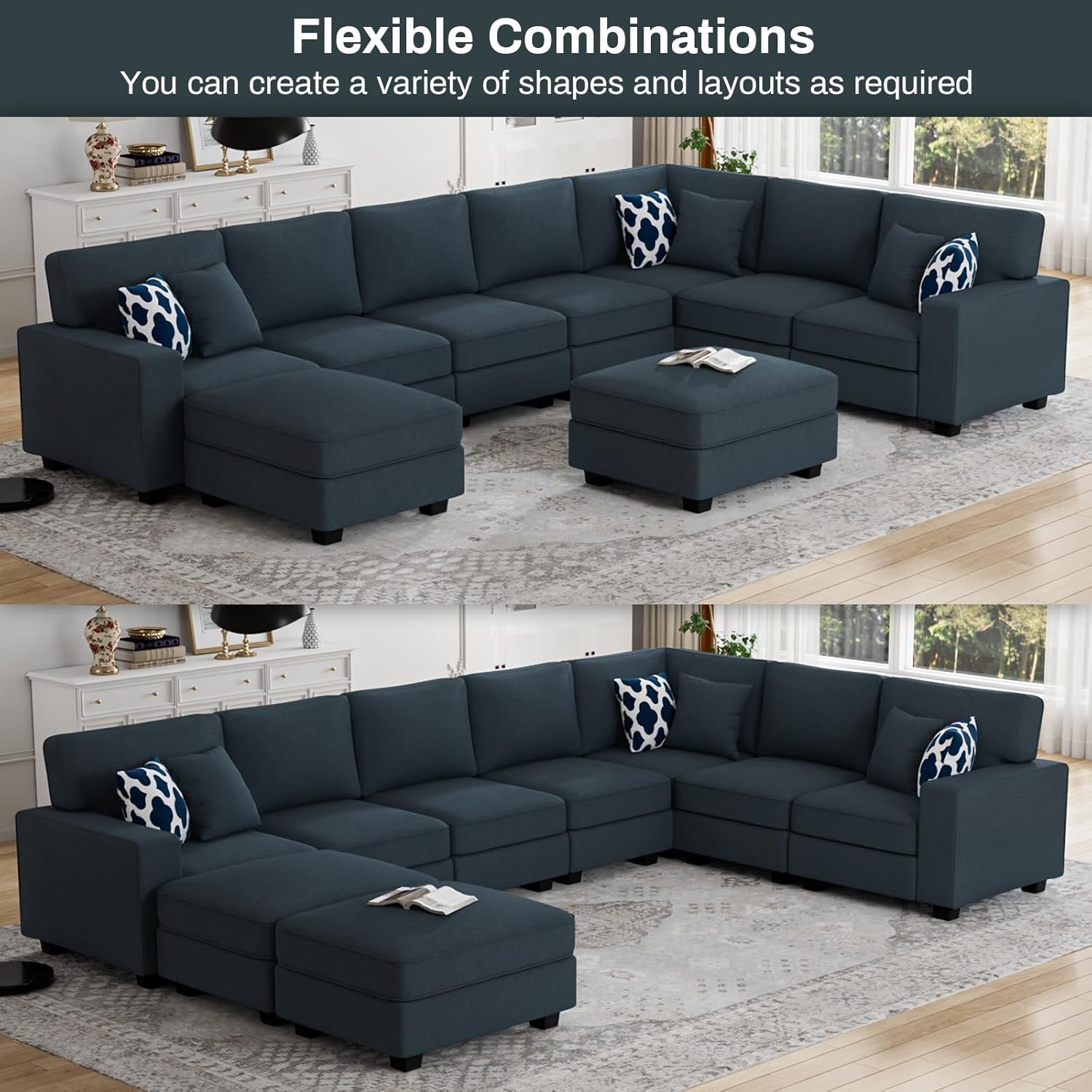 - 【Flexible Combination】The u shaped couch can rearrange the seats, you can adjust it as you like to create various shapes and layouts, whether it's combined into an L shaped sofa or a U shaped sofa, this sofa couch can fit your space perfectly. This flexibility not only brings more choices, but also saves your budget, by adding additional modules, you can easily expand the capacity and functionality of the sofa without having to replace the modular sofa completely.