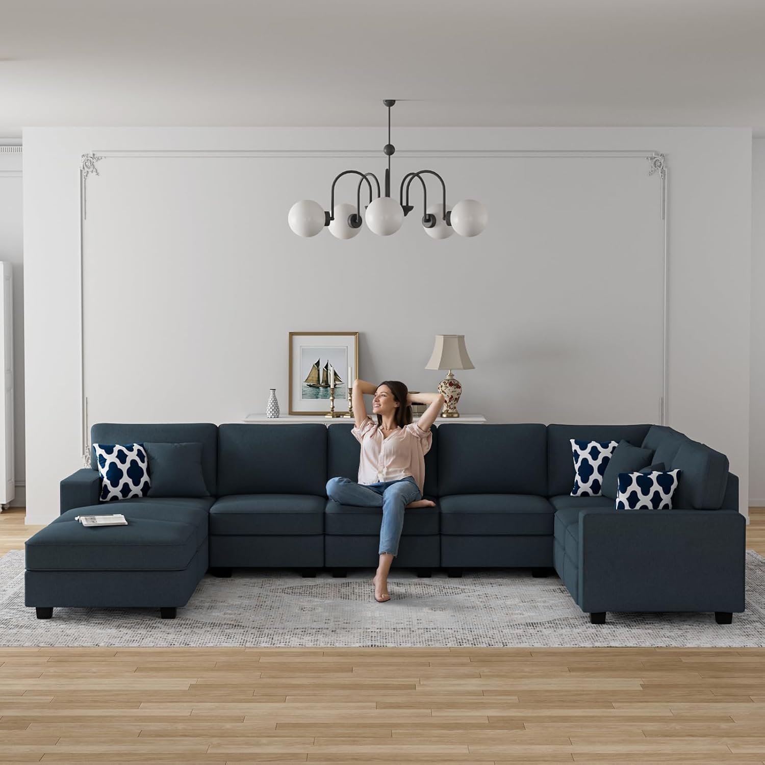 - 【Ergonomic Design】The backrest of the couches for living room perfectly fits the human body curve, the armrests are wide and at the right height, and the living room sofa as a whole is ergonomically designed to give you comfortable support. The modular sectional sofa is paired with multiple multi-functional small pillows, allowing you to relax anytime, anywhere. The oversized couch has a weight capacity of up to 660 pounds to give you stable support.