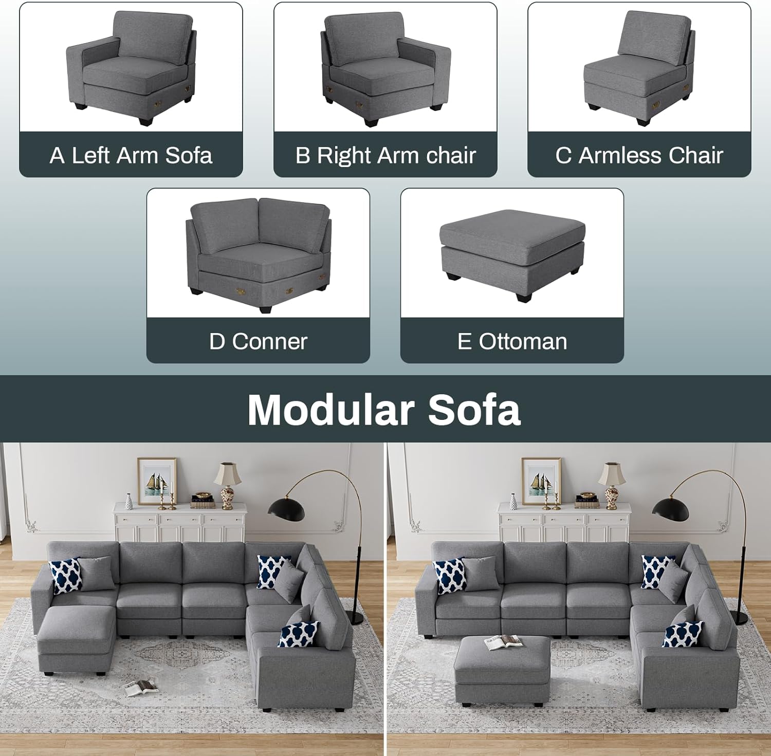 - 【Flexible Combination】The u shaped couch can rearrange the seats, you can adjust it as you like to create various shapes and layouts, whether it's combined into an L shaped sofa or a U shaped sofa, this sofa couch can fit your space perfectly. This flexibility not only brings more choices, but also saves your budget, by adding additional modules, you can easily expand the capacity and functionality of the sofa without having to replace the modular sofa completely.