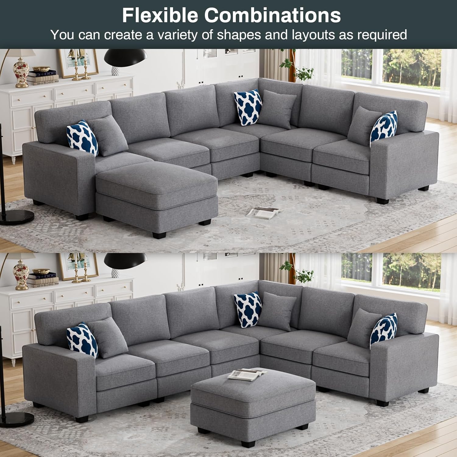 - 【Ergonomic Design】The backrest of the couches for living room perfectly fits the human body curve, the armrests are wide and at the right height, and the living room sofa as a whole is ergonomically designed to give you comfortable support. The modular sectional sofa is paired with multiple multi-functional small pillows, allowing you to relax anytime, anywhere. The oversized couch has a weight capacity of up to 660 pounds to give you stable support.