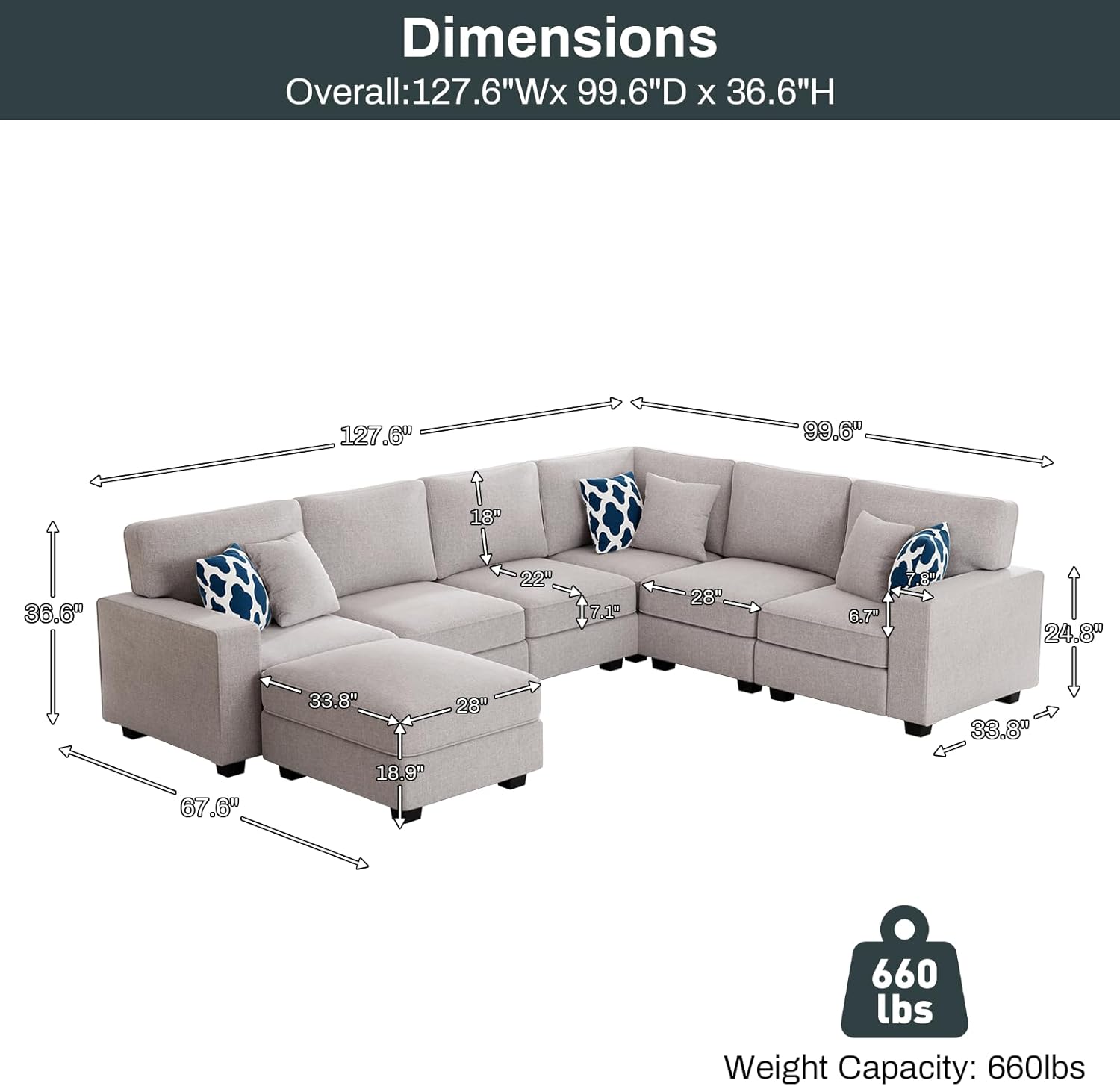- 【Ergonomic Design】The backrest of the couches for living room perfectly fits the human body curve, the armrests are wide and at the right height, and the living room sofa as a whole is ergonomically designed to give you comfortable support. The modular sectional sofa is paired with multiple multi-functional small pillows, allowing you to relax anytime, anywhere. The oversized couch has a weight capacity of up to 660 pounds to give you stable support.